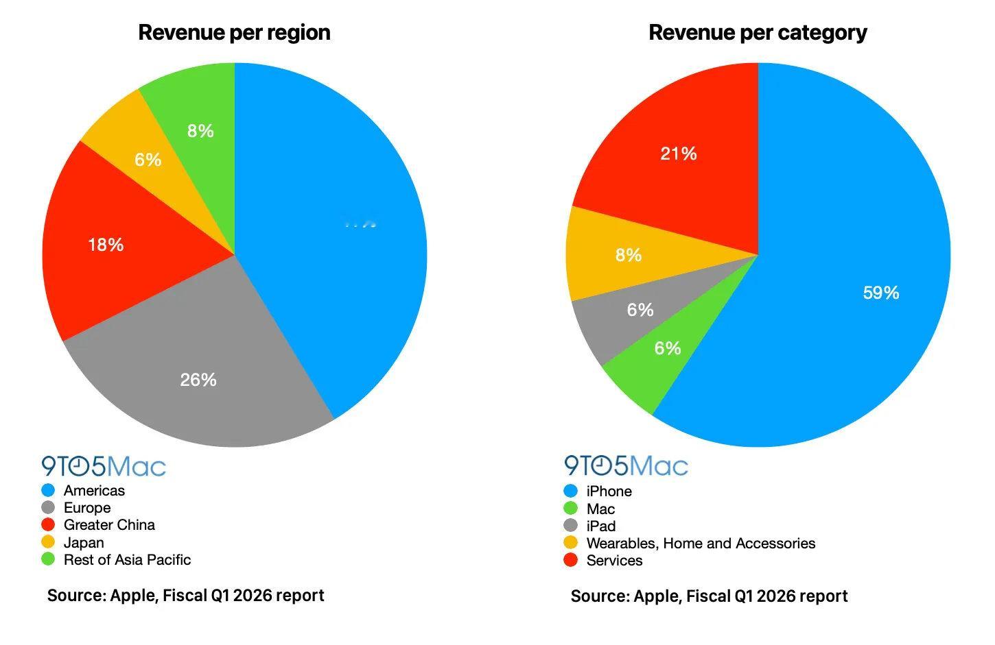 苹果发布 2026 财年第一财季报告,公司1438 亿美元营收,同比增长 16%,毛利率为 48.2%。iPhone 营收为 852 亿美元,占比 59%,同比增长了 23%。iPhone创历史最佳季度表现(Mac 比 iPad 的营收还低)