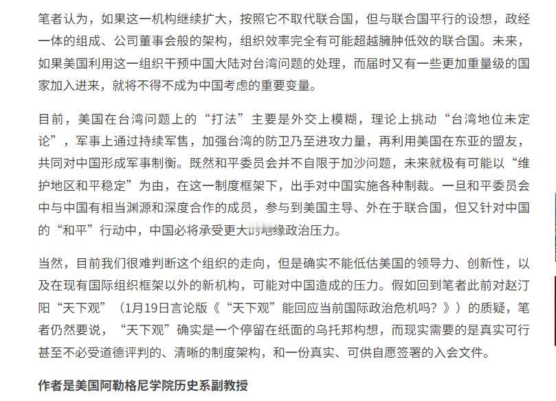 中国怕是要“当心”了!1月29日,联合早报刊文表示,特朗普组建的“和平委员会”几