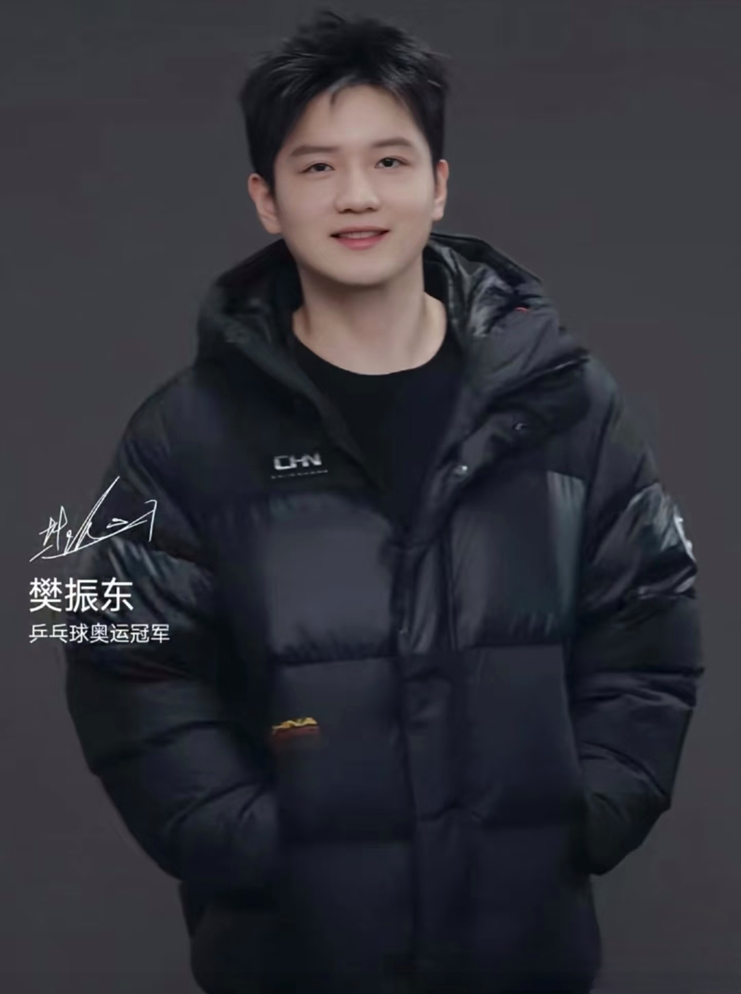 这件黑色羽绒服上辈子大概拯救过银河系,这辈子才能有幸被🐼披在身上。人人都爱樊振东有一种想念叫樊振东