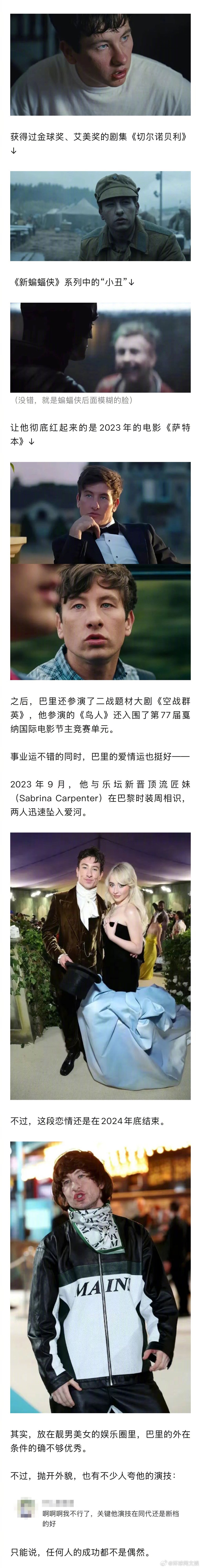 【#巴里基奥汉被嘲丑成人类共识#】据多家外媒报道,当地时间1月28日,33岁的爱尔兰演员巴里·基奥汉(Barry Keoghan)在伦敦出席他的新电影《犯罪101》的首映礼,展示了他的新发型——一头蓬松的长发。据悉,这是为出演披头士传记片而留,但巴里·基奥汉却再次因为长得丑被骂翻了……