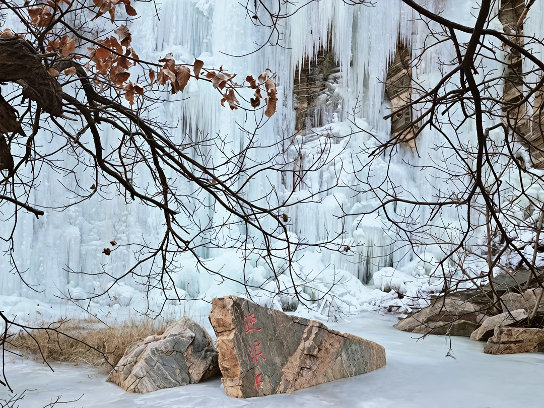 👉 第一次见到天然冰瀑真的被震撼到!🧊冰柱像水晶帘子垂下来,阳光照在上面会折射出彩虹光🌈,手机原相机直出都美到窒息~