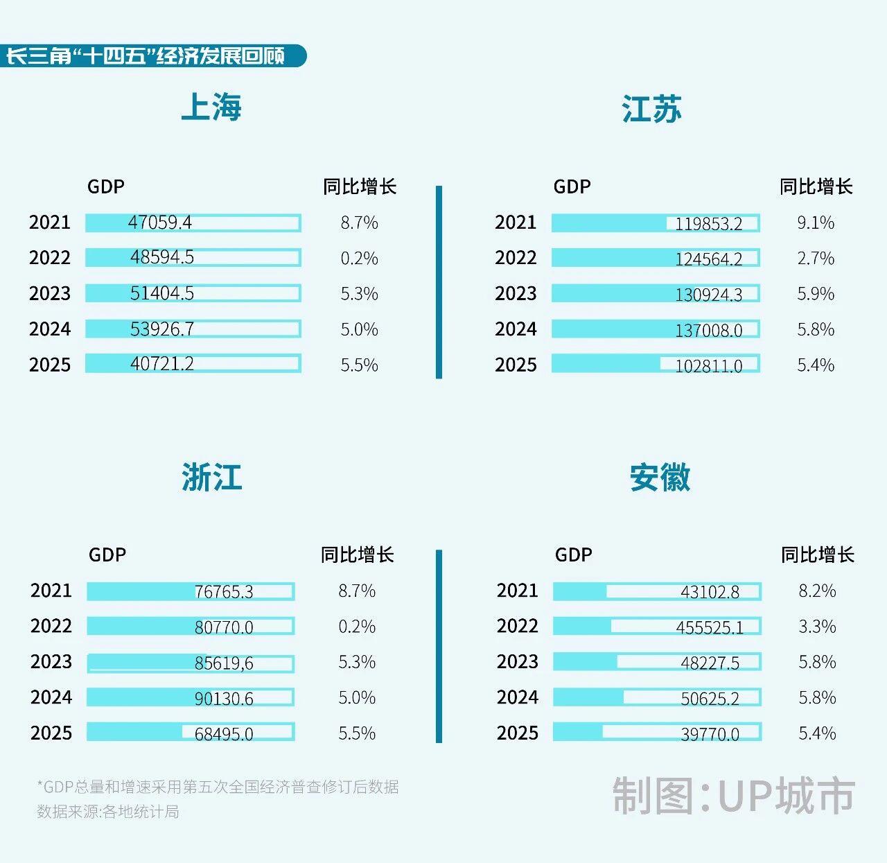 随着1月28日江苏省统计局公布2025年江苏经济运行数据,长三角三省一市2025