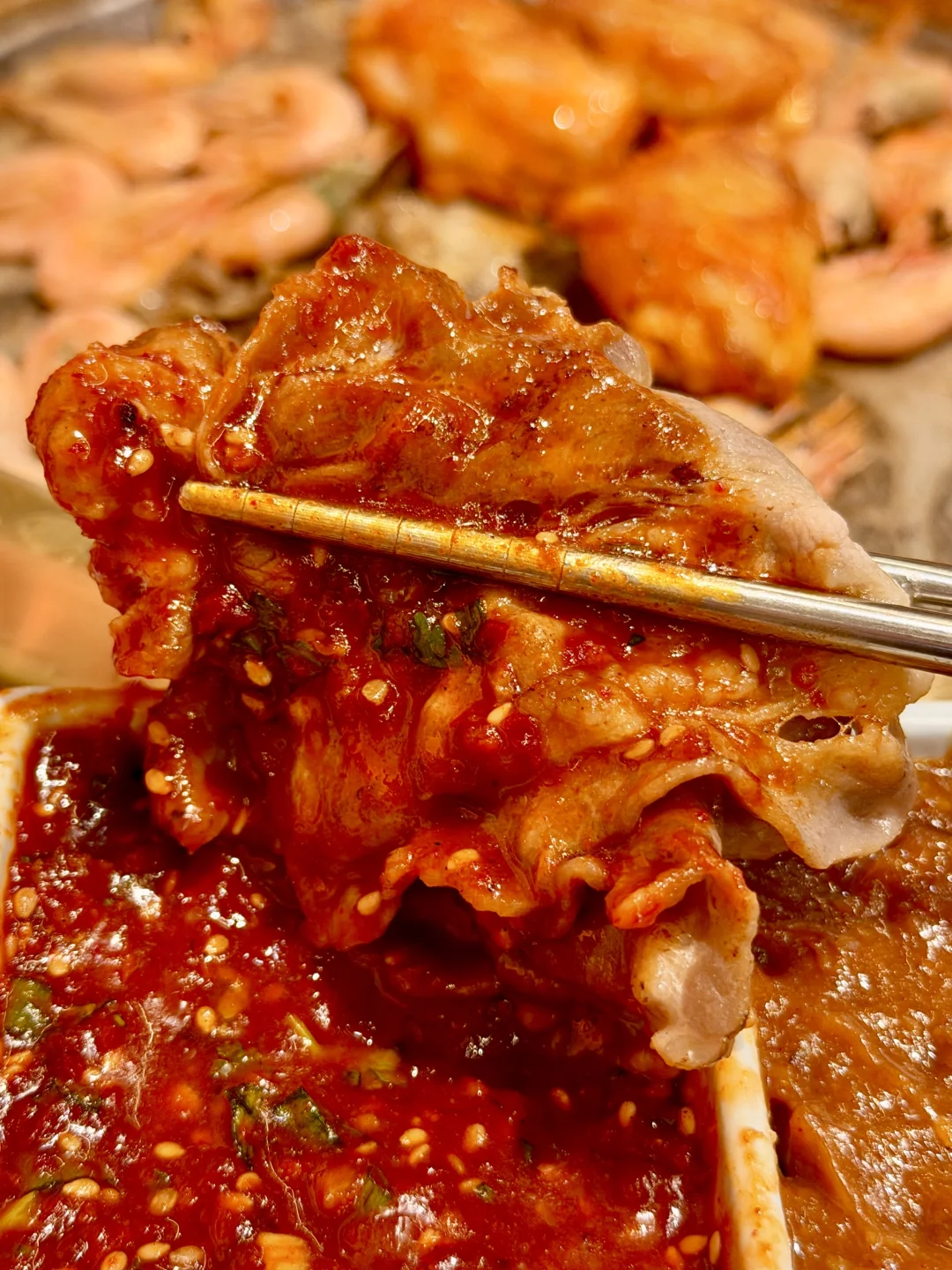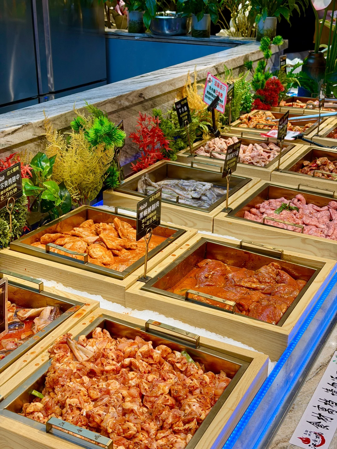 300+菜品不限量炫,烤肉海鲜甜品饮品全都有! 直接吃到扶墙出!真的太值了! 原切谷饲肥牛、厚切五花肉、奥尔良鸡翅中、羊腰子各种各样的肉全都堆成山!还有滋滋冒油的烤鸡皮,烤五花肉、煎鳕鱼🐟 吃起来外脆里嫩一点不腻 他家的海鲜区也很丰富! 🦐黑虎虾、明虾,扇贝生蚝随便拿~ 还有我超爱的锅包肉,麻辣鸡爪, 甚至还有现片烤鸭、巴西烤肉🥩闭眼拿都好吃 爱吃肉和海鲜的真的能吃到爽! 💡小tips: 1. 工作日中午去人少,菜品补得快 2. 烤肉记得调800-1000档位,烤出来更香 3.进门先去拿海鲜🦪先拿一波贵的 总体来说这家自助吃的太值了! 和朋友聚餐、闺蜜约会带上512G的胃冲就完了!
