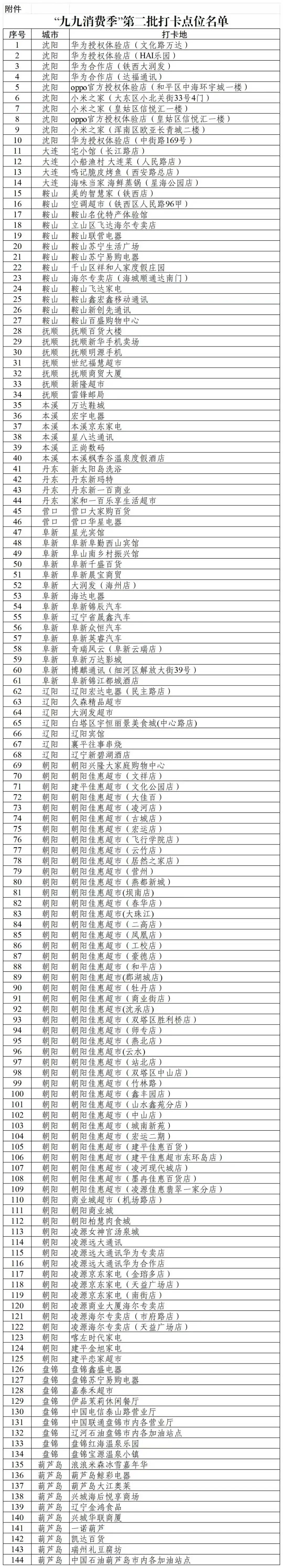 关于开通辽宁“九九消费季”第二批打卡点位的公告