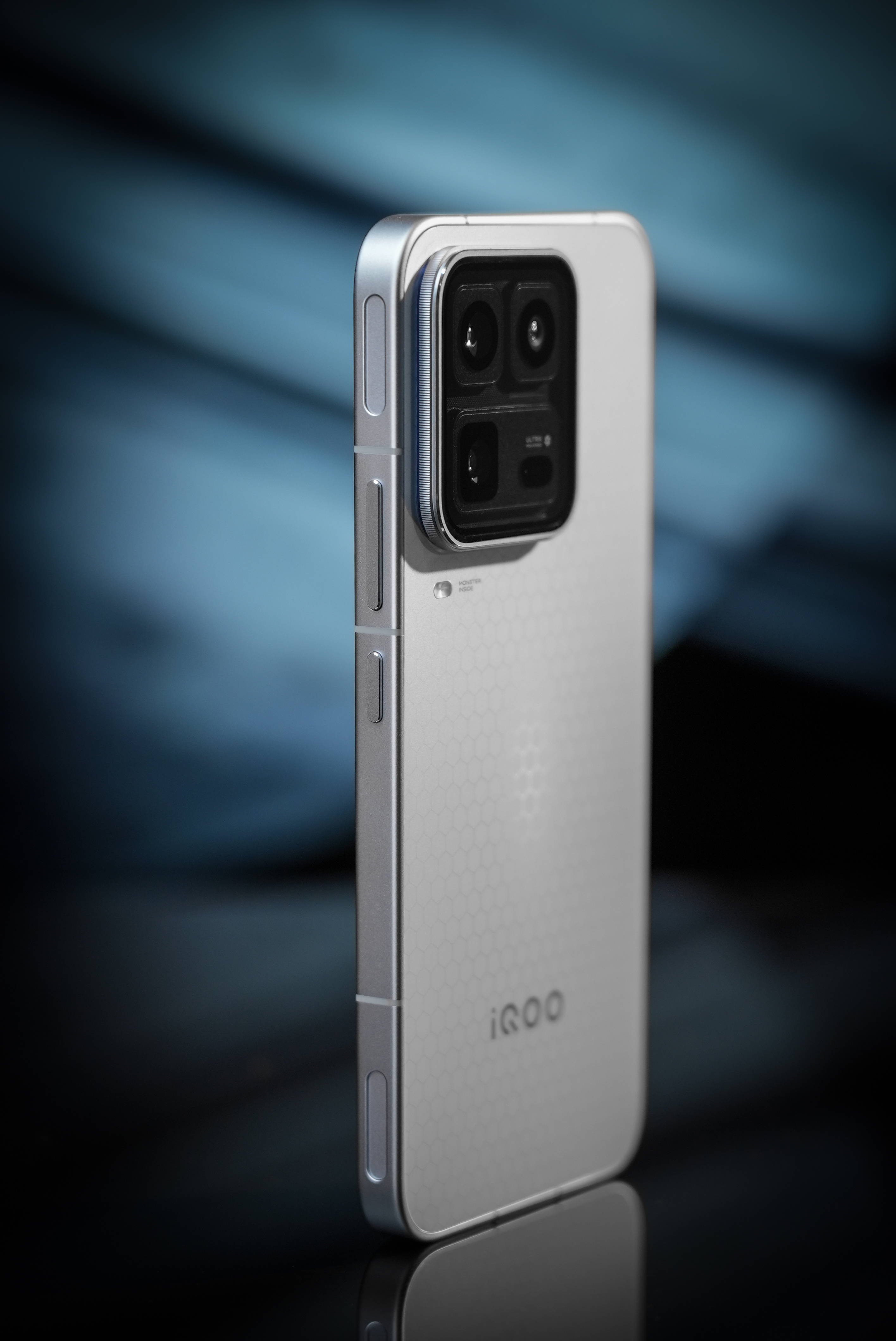iQOO 15 Ultra 这个 2049 配色,真的长在我审美上,哑光银后盖自带银翼杀手那股未来感。转动机身的时候,背部的寒光蓝蜂巢纹理就冒出来了,挺有小心思的。中框哑光喷砂不沾指纹,握着手感很润。透明镜头模组就像是未来舱,加上 Ultra 标识,挺有质感的。iQOO15Ultra外观太酷了