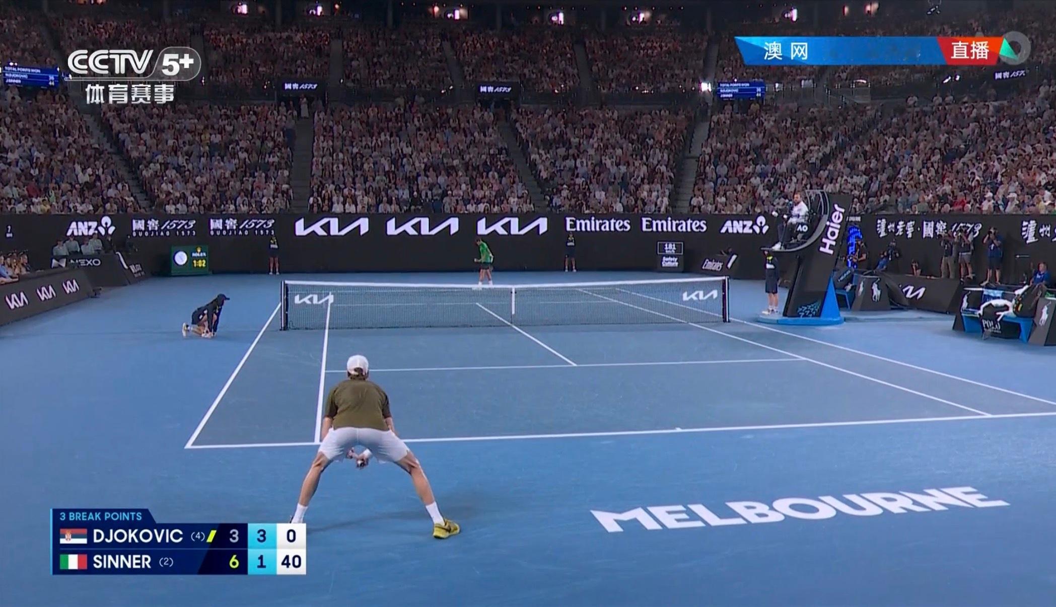 德约科维奇vs辛纳 德约0-40连赢5分保发!兑现破发优势!第二盘4-1!真不容