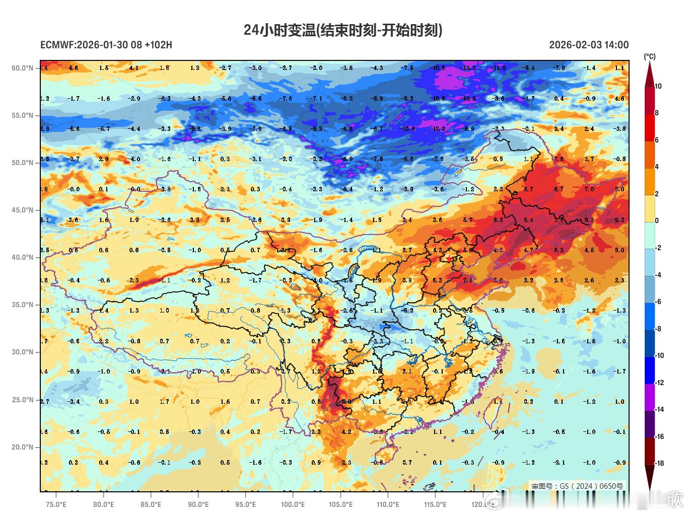 比如,今天沈阳最高零下9℃,2月3日最高6℃。明天杭州最高4℃,2月5日最高19℃。但是这个时节的升温向来是升猛了就要来一波速降。2月初冷空气会在西伯利亚集结。2月4日冷高压可达1045百帕。2月5-7日冷空气将大举南下,给我国中东部带来明显降温。对比2月3-6日最高气温,沈阳降16℃,长春降15℃。气温刚反转变偏高,随后又转为偏低。