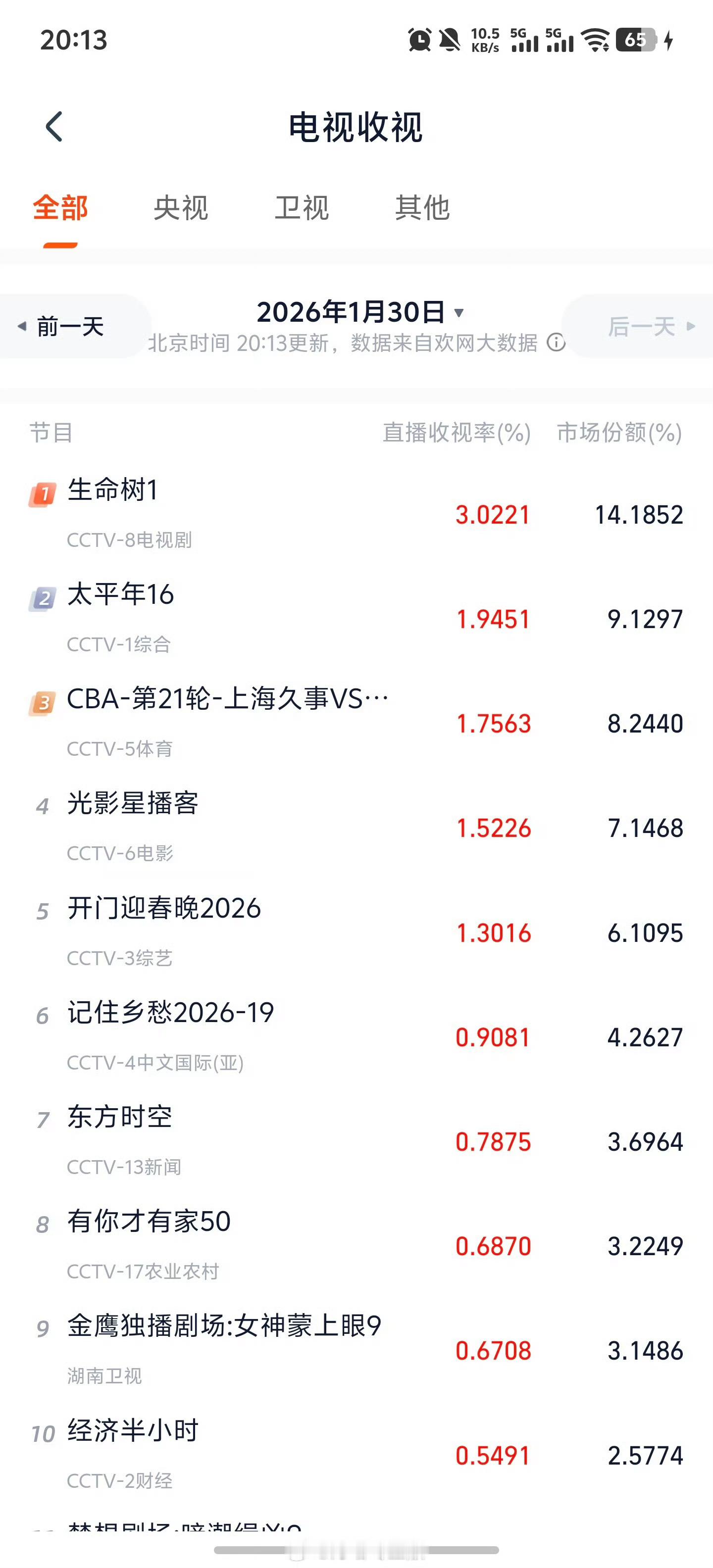 生命树收视率破3据灯塔专业版数据,由杨紫领衔主演,胡歌特别出演,李光洁 、张哲华领衔主演的新剧《生命树》开播第一天,直播收视率已破3!恭喜《生命树》有冲击年度剧王的潜力!
