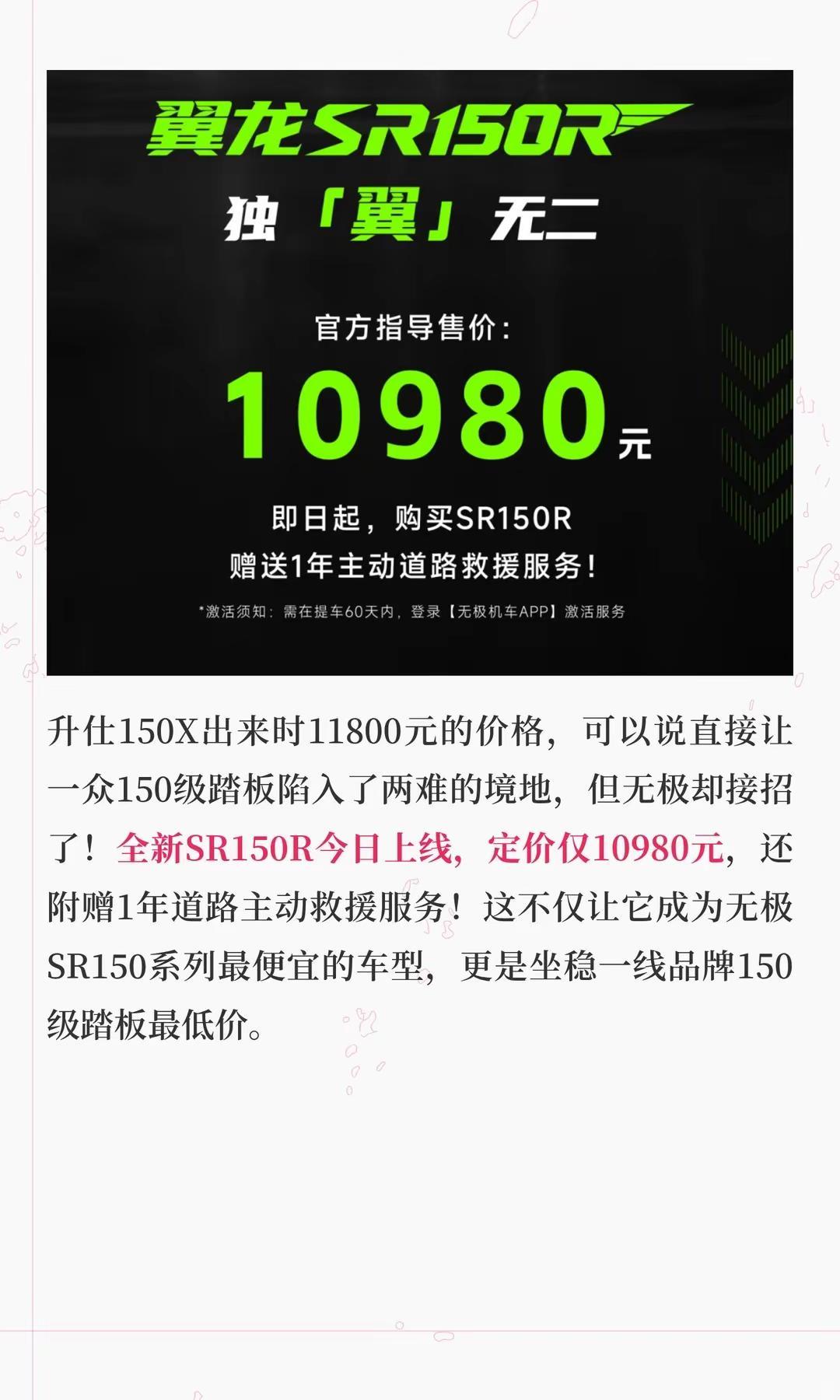 10980元送救援!无极SR150R上市。10980元还送救援!无极SR150R上市,小品牌该咋活?无极机车 无极sr150r 新车上市 摩托车