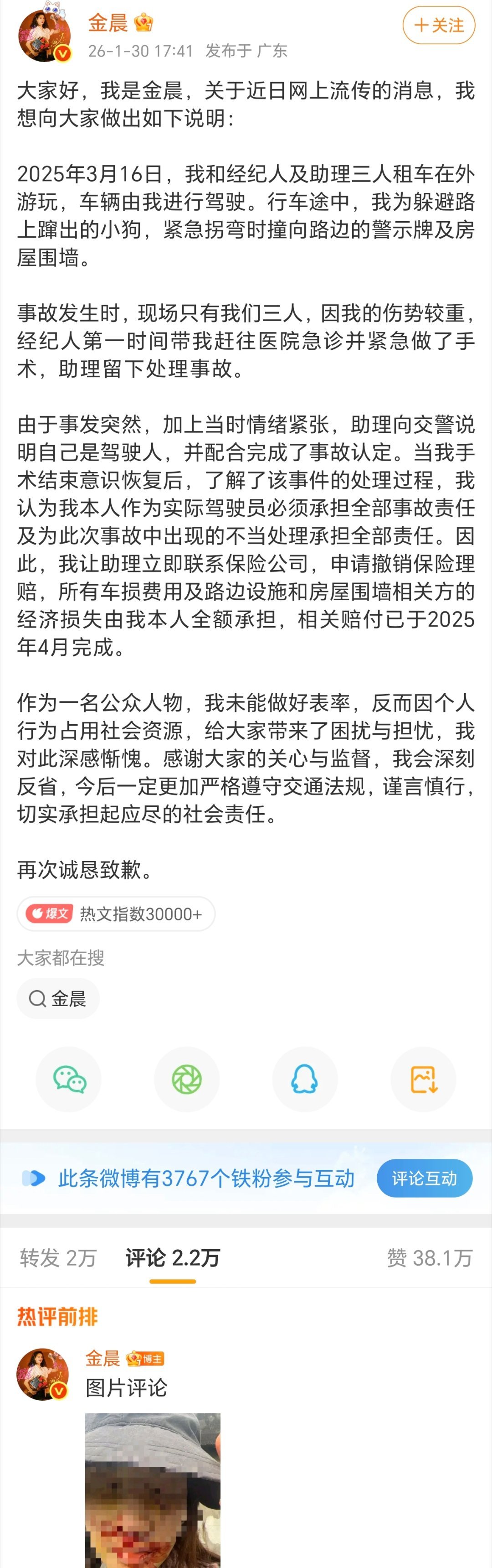 警方通报金晨事件警方通报出来了。看金晨在平台道歉了。