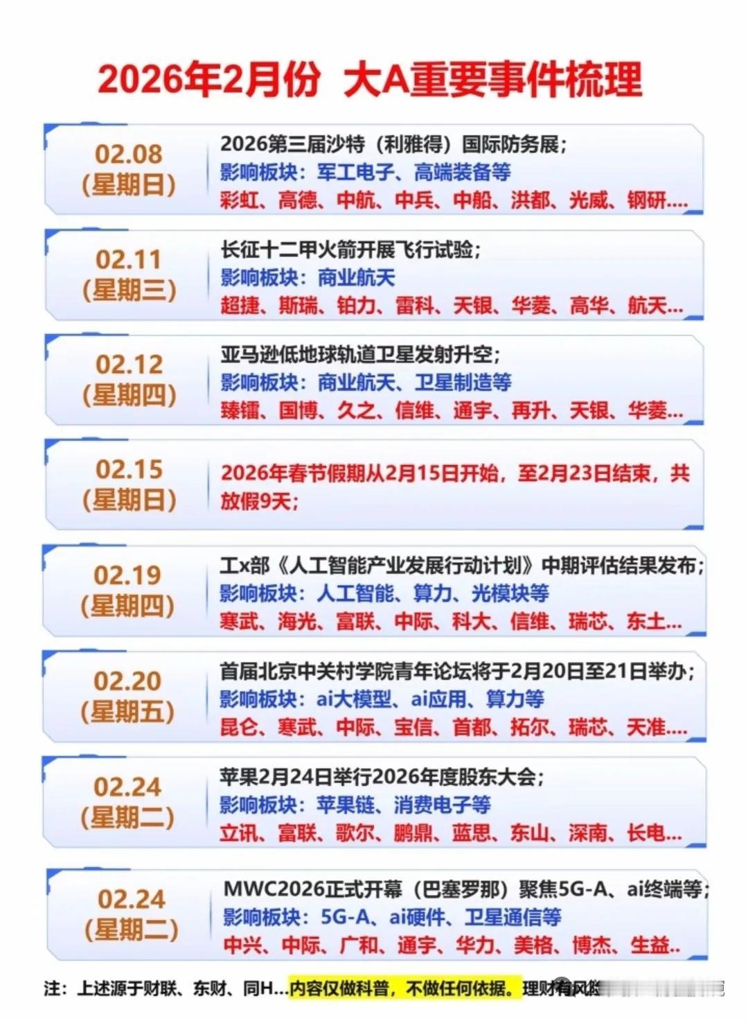 2026年2月大A重要事件+全年AI催化前瞻,为你梳理投资日历,哪些板块值得提前