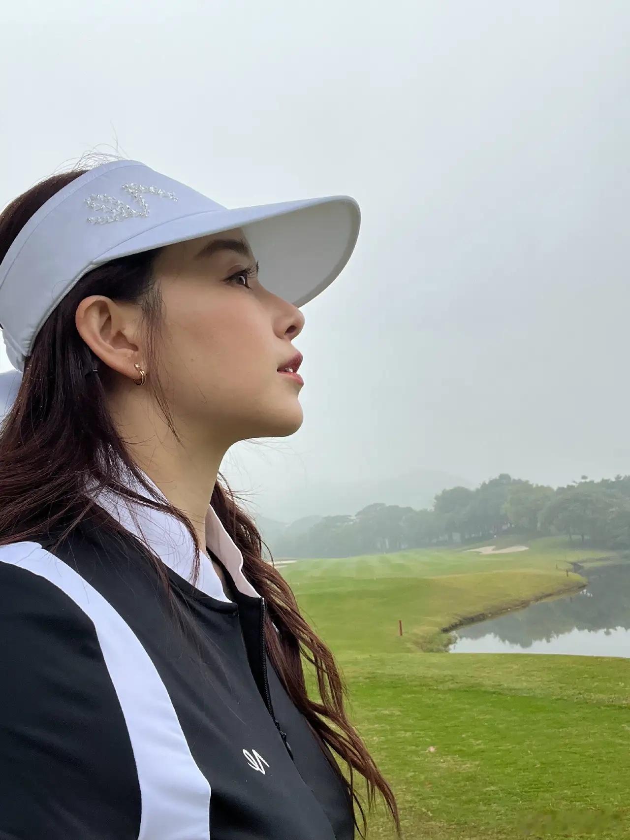 阚清子侧颜拍照好好看,这下颌线又美又飒。清子称这是乔海伦第一次打高尔夫值得记念一