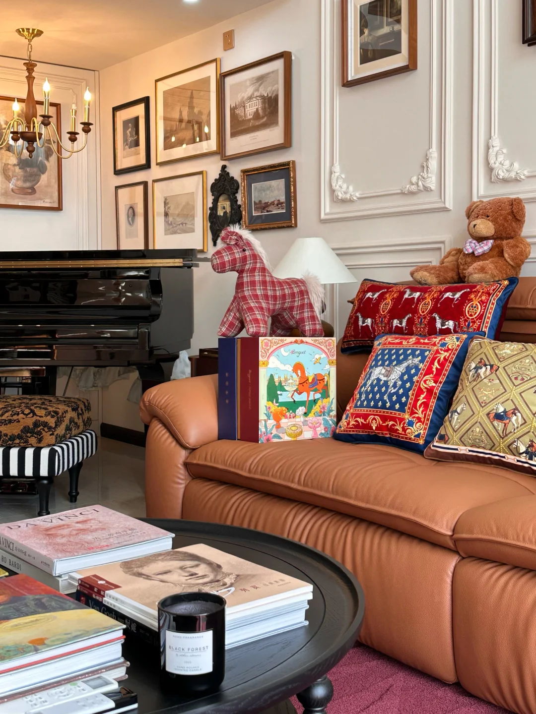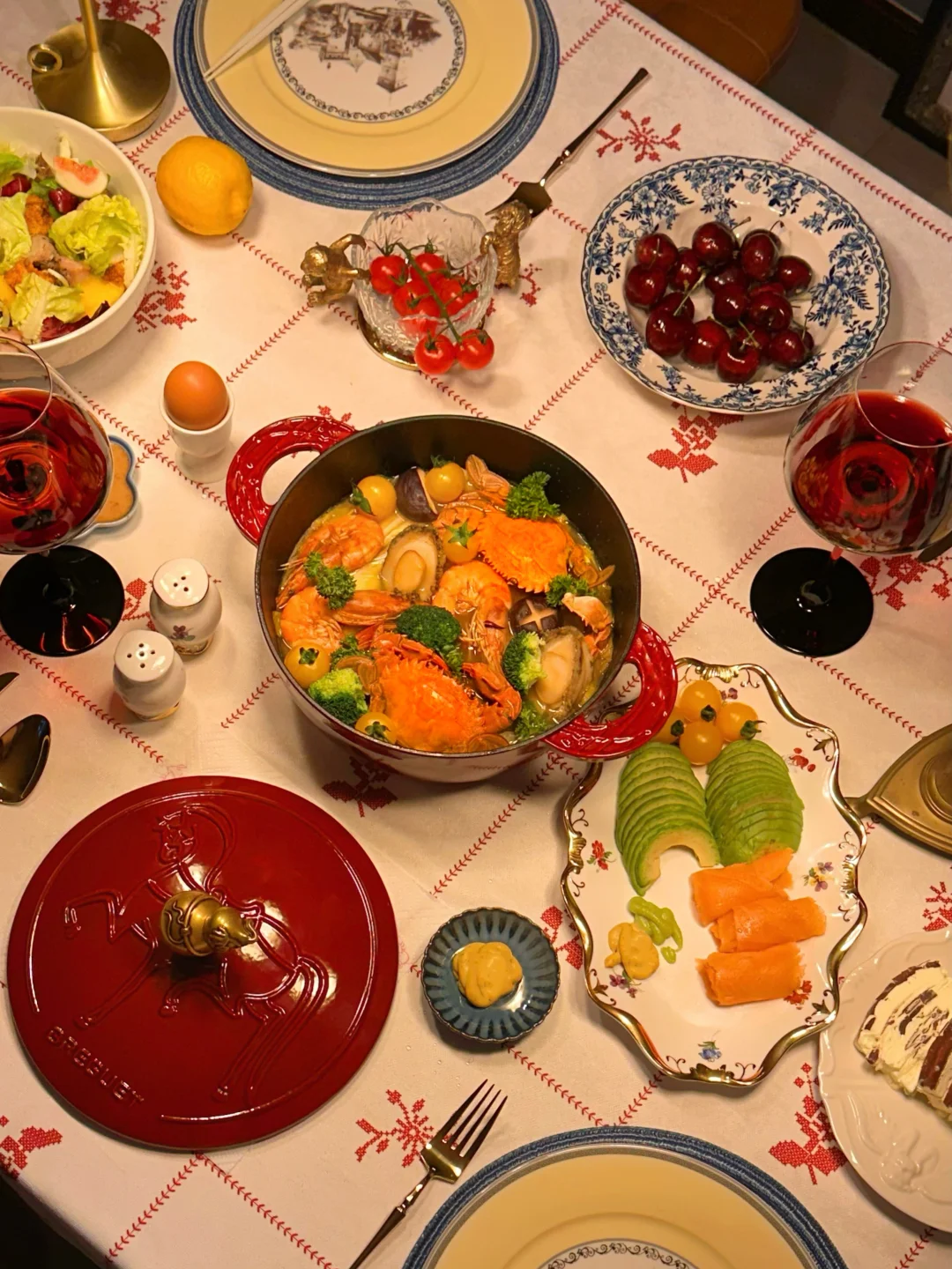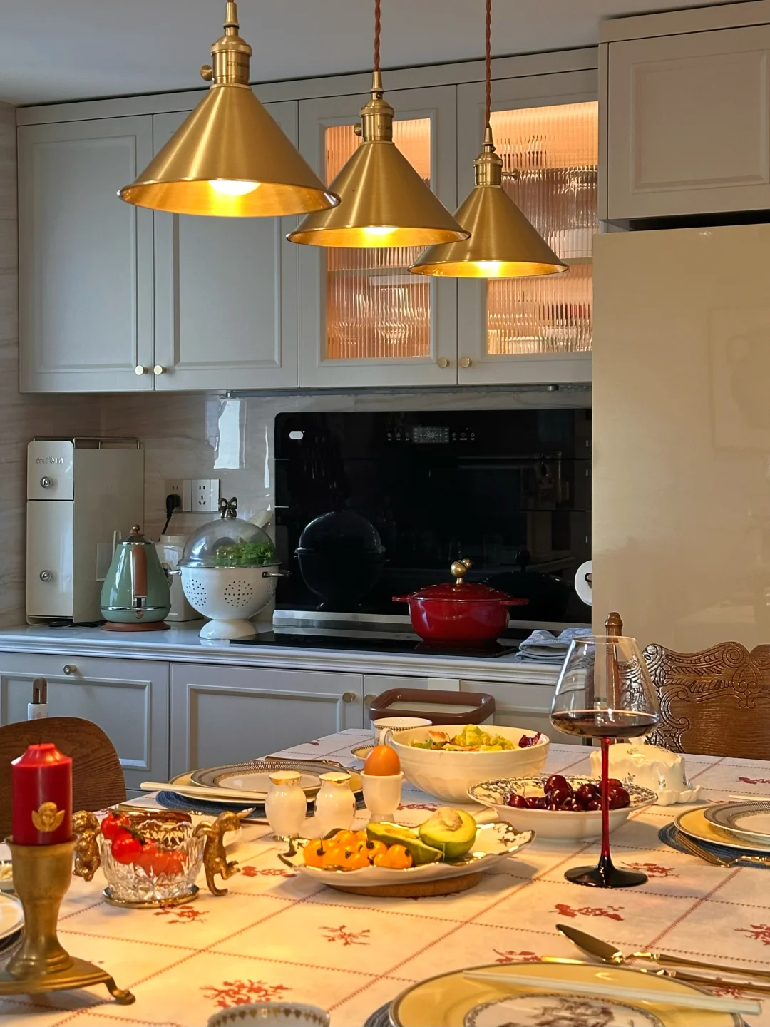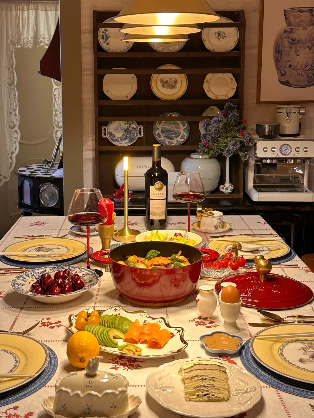 - 自从搬到这间公寓,每天清晨醒来,步入客厅,便见高挑开阔明媚的窗景。这个家似乎每个角落都可以坐下来,并随处拿起一本书翻看。在这个家,我比以往更感觉安宁。即使来到厨房,在宽大的中岛台前做早餐,也让我拥有在以往厨房里不曾有过的幸福感。或许,因为这里每一处都是自己亲手设计的。我比以前更宅,也更不愿意外食了。即使已经半年未出门旅行,也不觉得有多遗憾。 或许因为今年孩子开始在校就餐的缘故,三餐不再是急促的任务,让我更愿意花心思去琢磨餐厨美学,花些慢工夫做美味和布置仪式感,也更期待周末全家共同进餐的时光。给岛台铺上一块印花桌布;小窗户挂上刺绣三角帘;墙边定制了个盘子架,厨房就又多一分法式田园的味道。 之前经常分享我家装修的混搭心得,现在发现,餐厨区也可以有很多混搭乐趣。比如,我们经常看到一些心动的盘子、餐具,其实它们和家里的也可以混搭。现如今家居不必讲究都用成套的餐具,有一套白色的基本款就够了,那些各有特色的蓝白餐瓷、金边杯盘......风格相近却又不同的单品,完全可以单件买来混搭,丰富的餐桌更有生机。甚至不用购买昂贵的西式套碟,像我一样用圆形的餐垫衬托主盘就ok的,餐桌真的可以自由发挥。 把美学融入日常生活,漂亮的锅具也会让人更爱进厨房,这一点我也亲身验证。我喜欢用珐琅锅,一方面色彩好颜值高,是灶台和餐桌上的亮点;另一方面一锅多用,灶台视觉不乱。用它做锅咖喱海鲜或南瓜浓汤,端上桌,孩子拍手轻呼。食材在锅里发生着美拉德反应,在餐桌上呲呲冒着香浓的热气,顿时食欲满满,这就是美食配美器带来的幸福感。 临近岁末,新春与本命年即将到来,家里添置了许多红色软装和马的图案,连锅具都选了骏马浮雕配复古红的款式,祥马垂首踏蹄预意了“低头耕耘,抬头皆丰盈”的生活哲学。 生活美学,便是在这人间烟火中,为自己耕耘一片片鲜活又丰盈的风景。