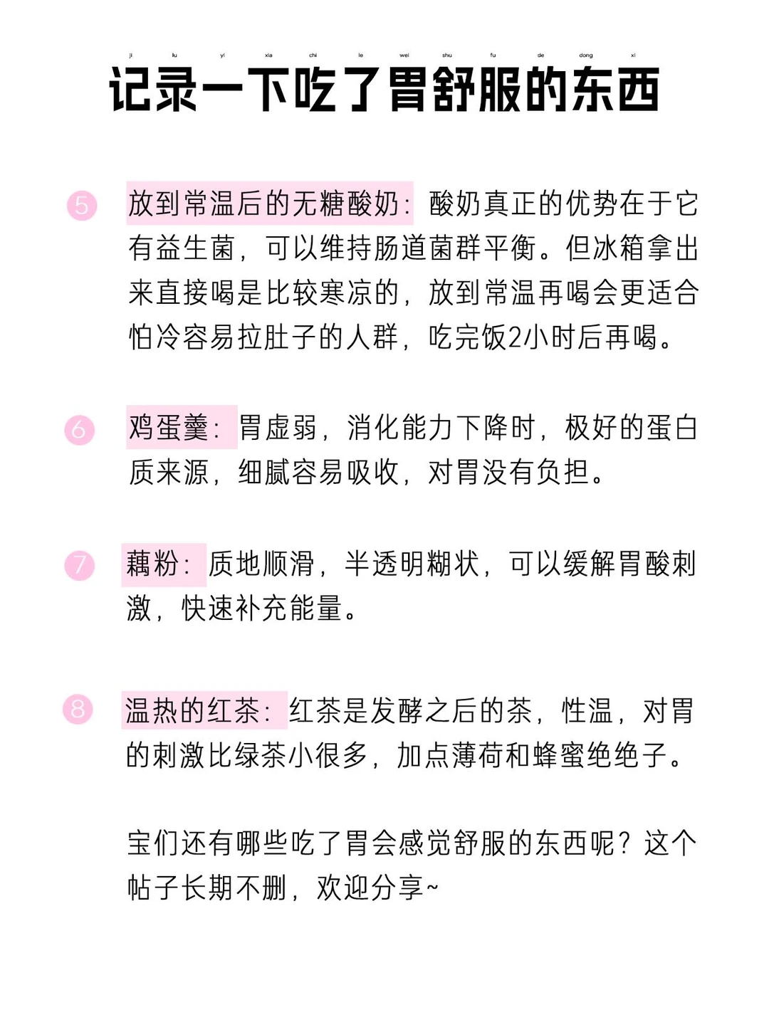长期记录一些吃了胃会舒服的东西