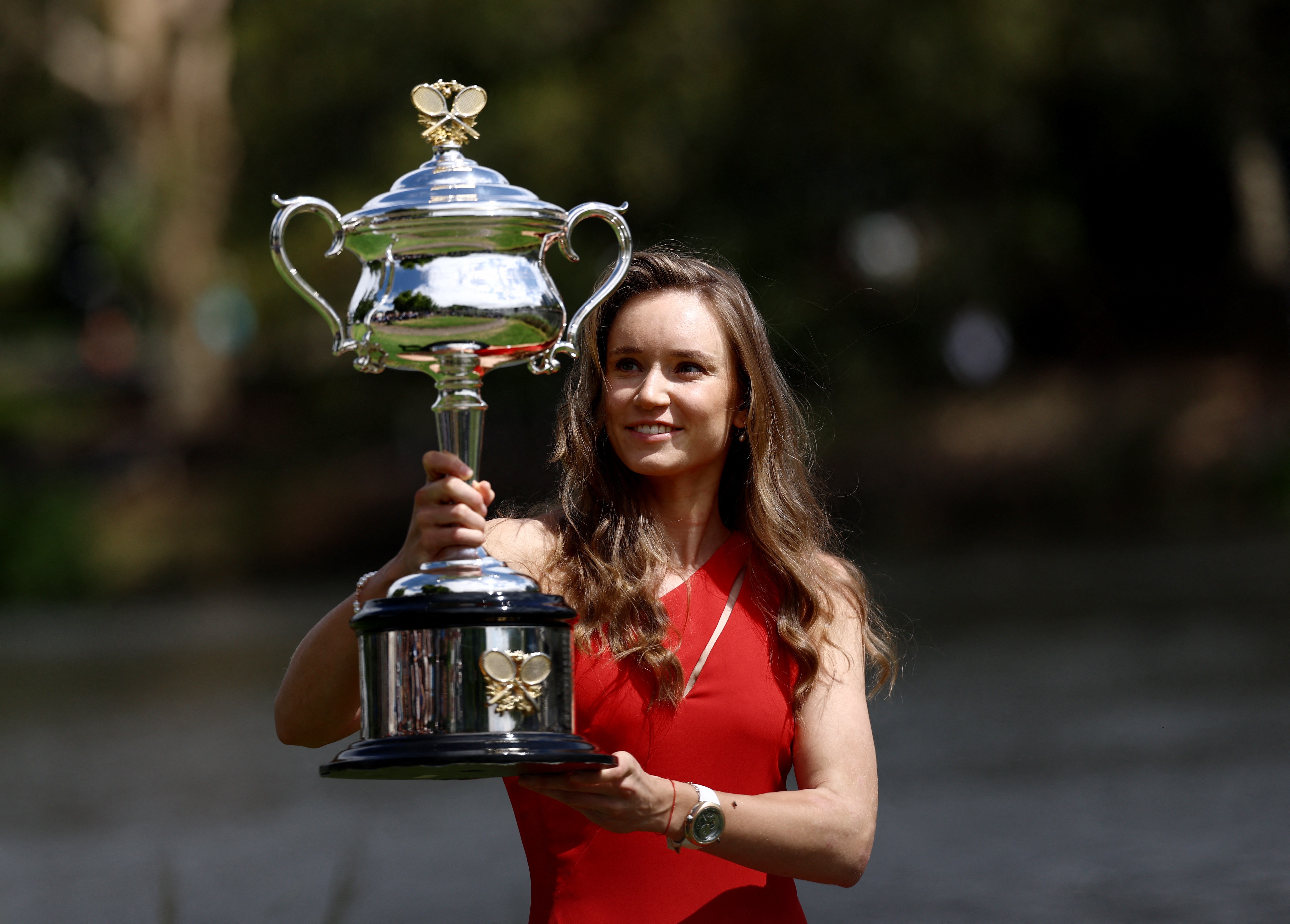 澳网女单决赛,赛会1号种子、世界排名第1的萨巴伦卡对阵赛会5号种子、世界排名第5的莱巴金娜。经过三盘较量,莱巴金娜2-1战胜萨巴伦卡,捧起生涯首座澳网女单冠军奖杯。在夺得冠军后,莱巴金娜手捧达芙妮杯拍摄冠军写真,一袭红裙,笑容明媚。