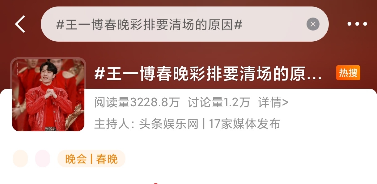 王一博春晚彩排要清场的原因 好多热搜!!!