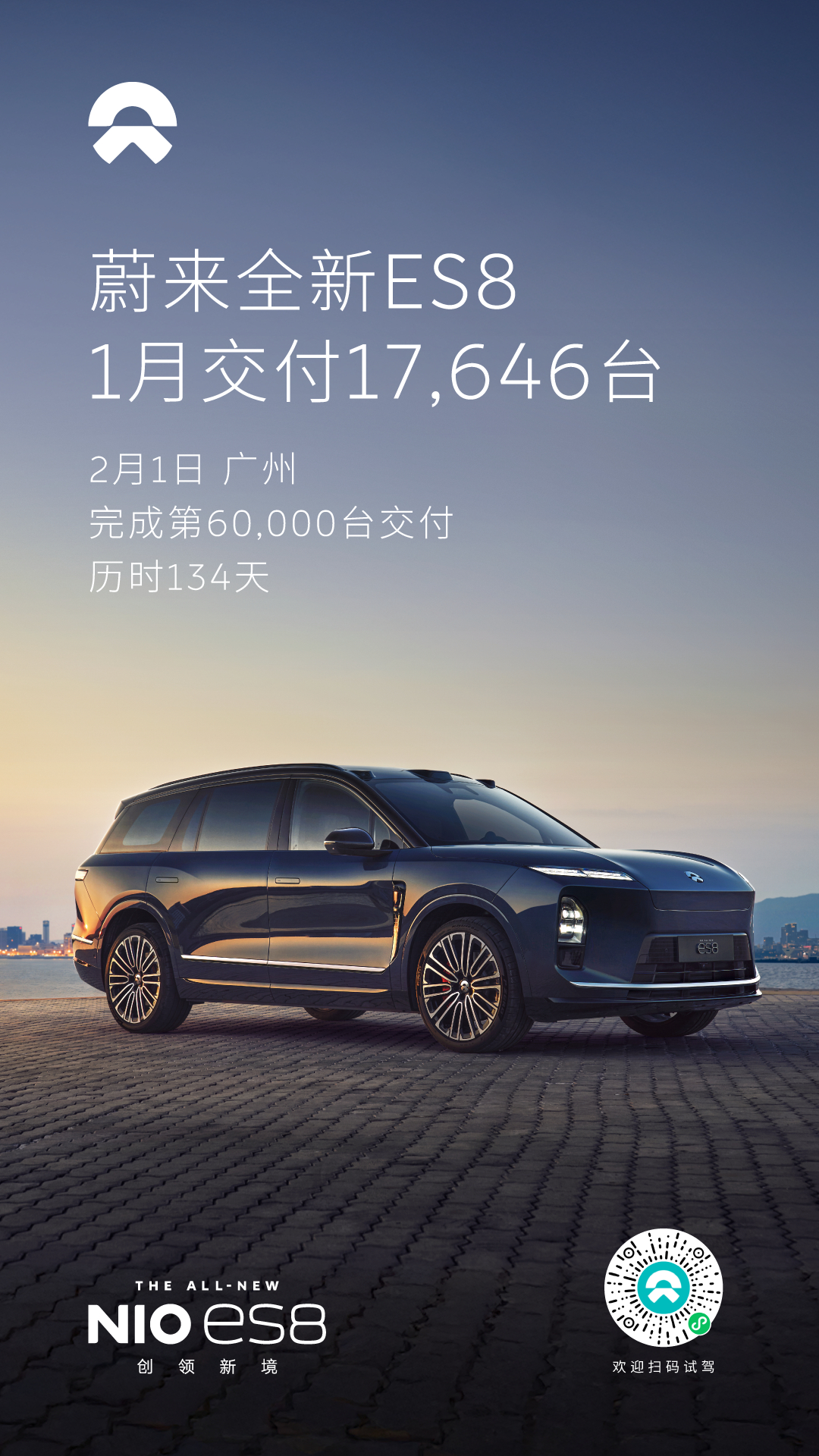 ES8 交付量确实上来了路上能见度也越来越高2026年1月,交付17,646台,