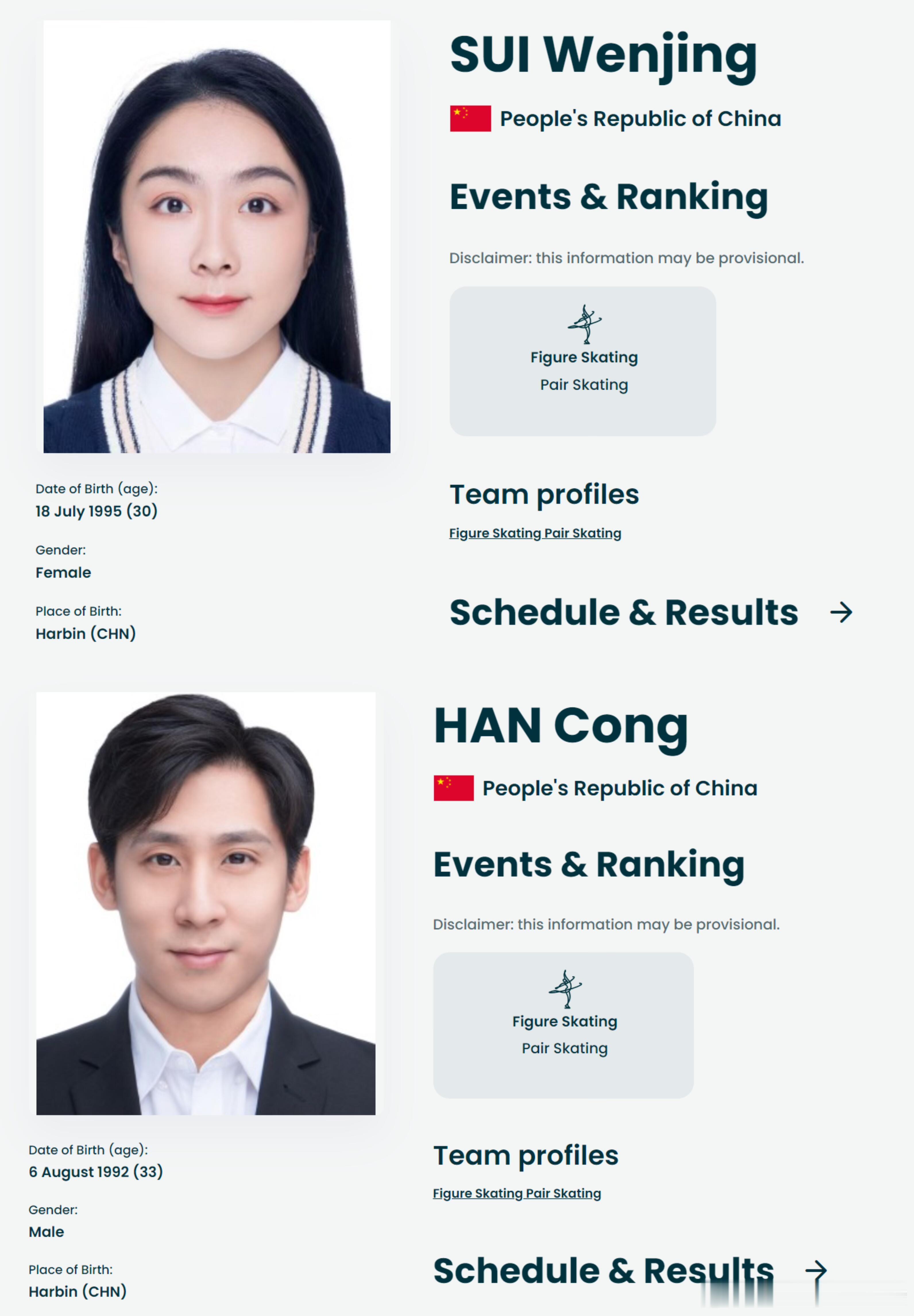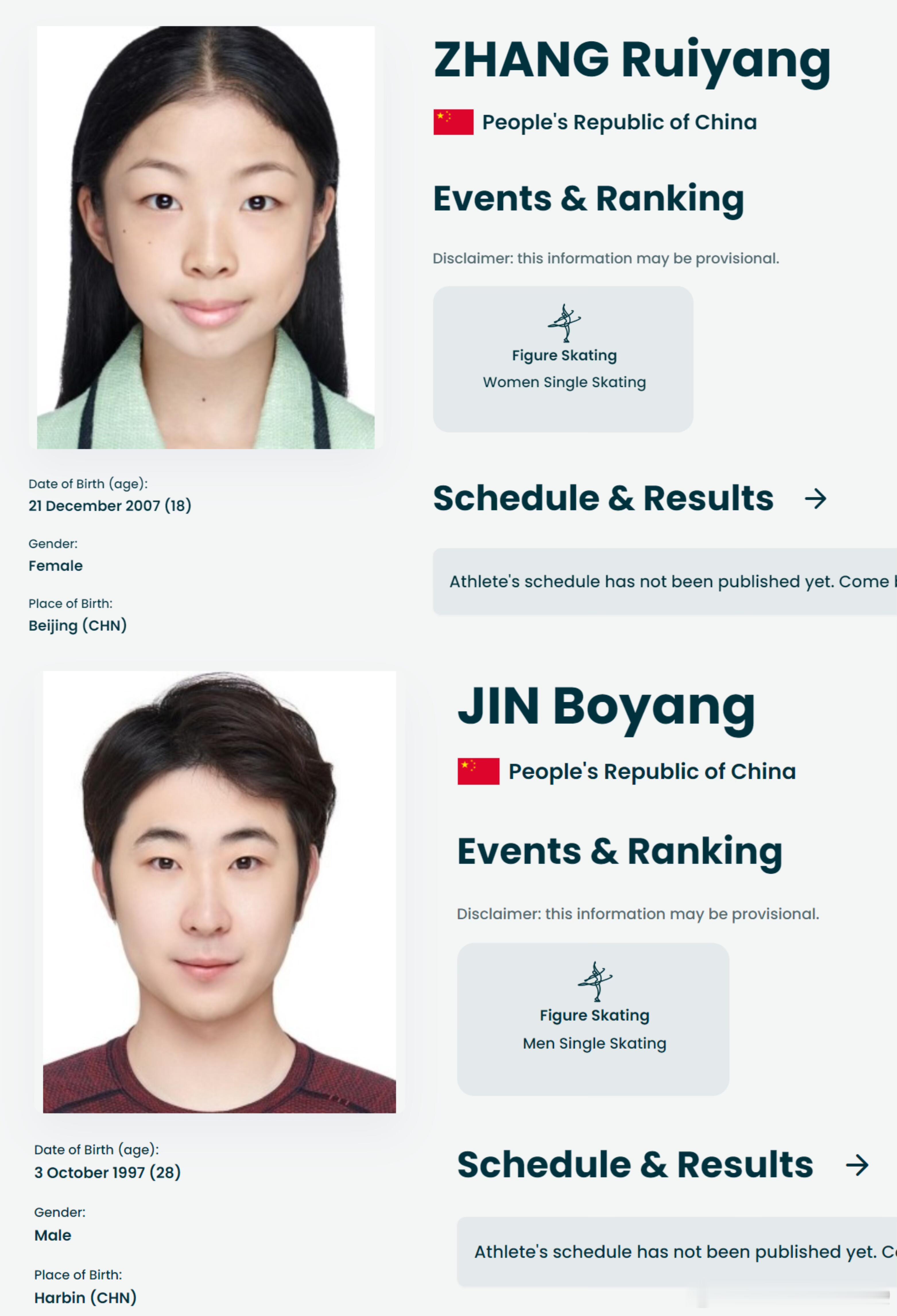 米兰冬奥会花滑队员公式照 | 中国队花滑阵容为3男3女:男单:金博洋女单:张瑞阳