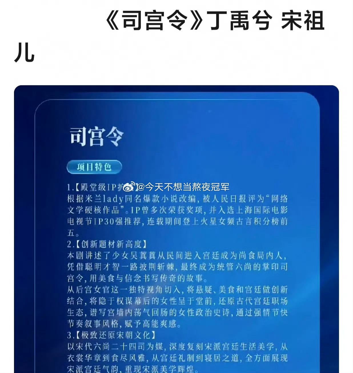 🍉🍉 鹅的S级古偶《司宫令》网传女主宋祖儿,男主从丁禹兮换成辛云来了。