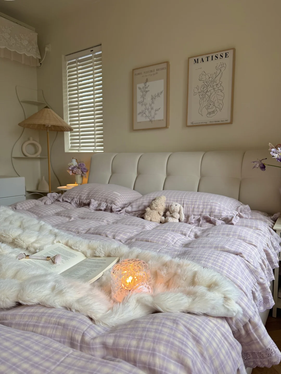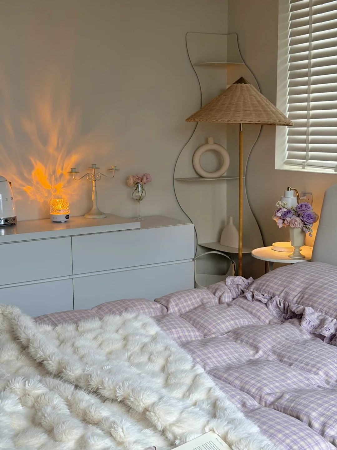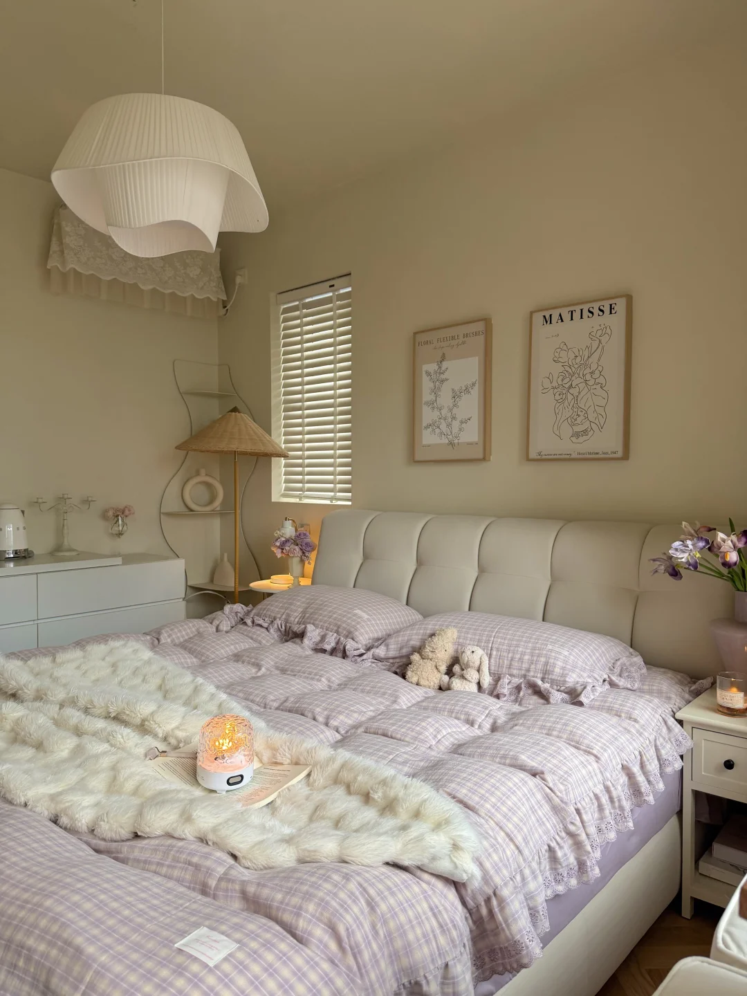 今日份的卧室是芋泥啵啵味💜 穿着睡衣慵懒宅家 发呆 是周末最好的疗愈方式吧✨