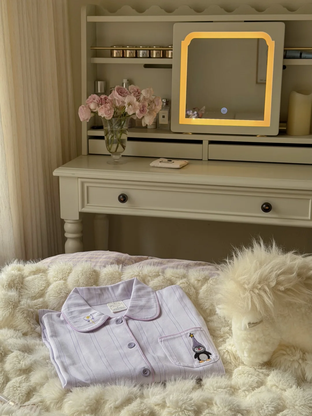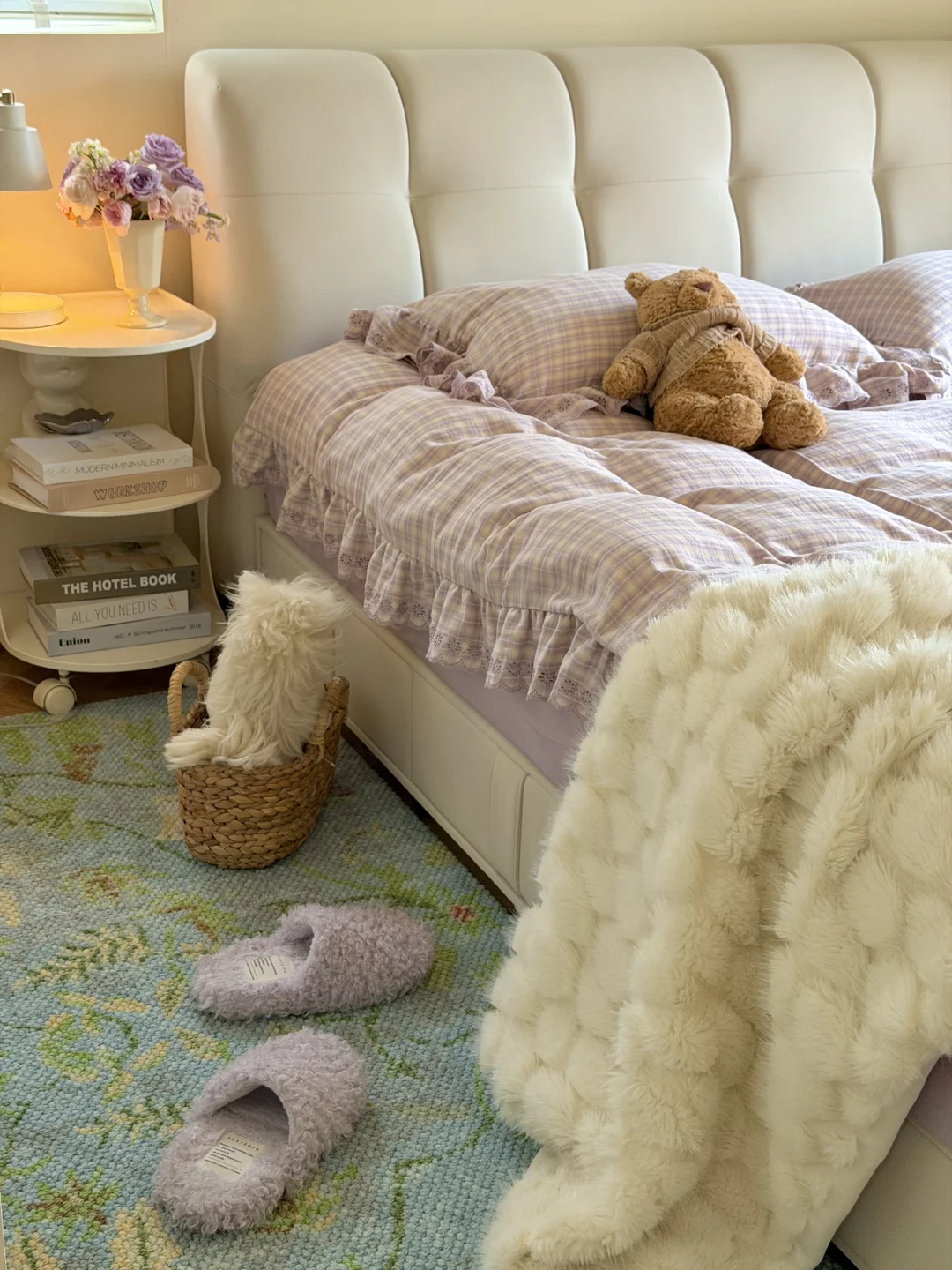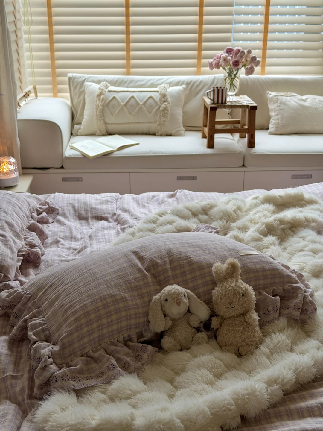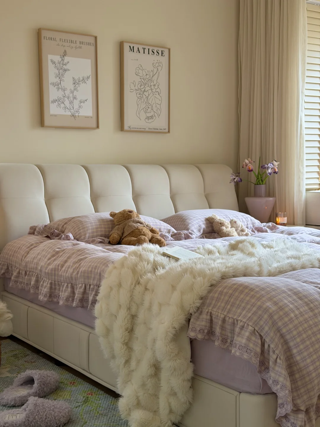 今日份的卧室是芋泥啵啵味💜 穿着睡衣慵懒宅家 发呆 是周末最好的疗愈方式吧✨