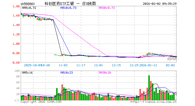 2月2日,科创医药ETF工银(588860)开盘跌0.56%,报0.706元。科创医药ETF工银(588860)重仓股方面,联影医疗开盘跌0.62%,百济神州跌0.09%,艾力斯跌2.11%,百利天恒跌1.38%,惠泰医疗涨0.00%,君实生物涨0.33%,泽璟制药跌1.09%,华大智造涨2.10%,博瑞医药跌0.62%,荣昌生物涨0.00%。