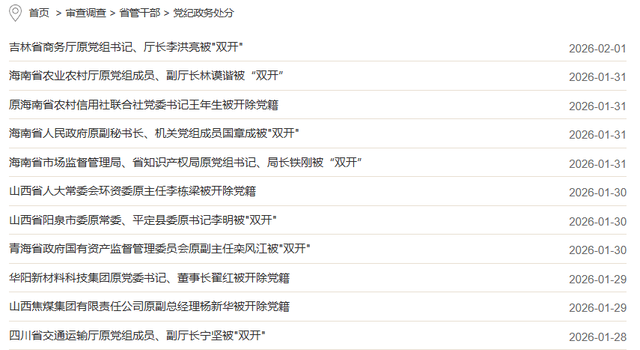 此外还有14名省管干部被查,11人受到党纪政务处分。