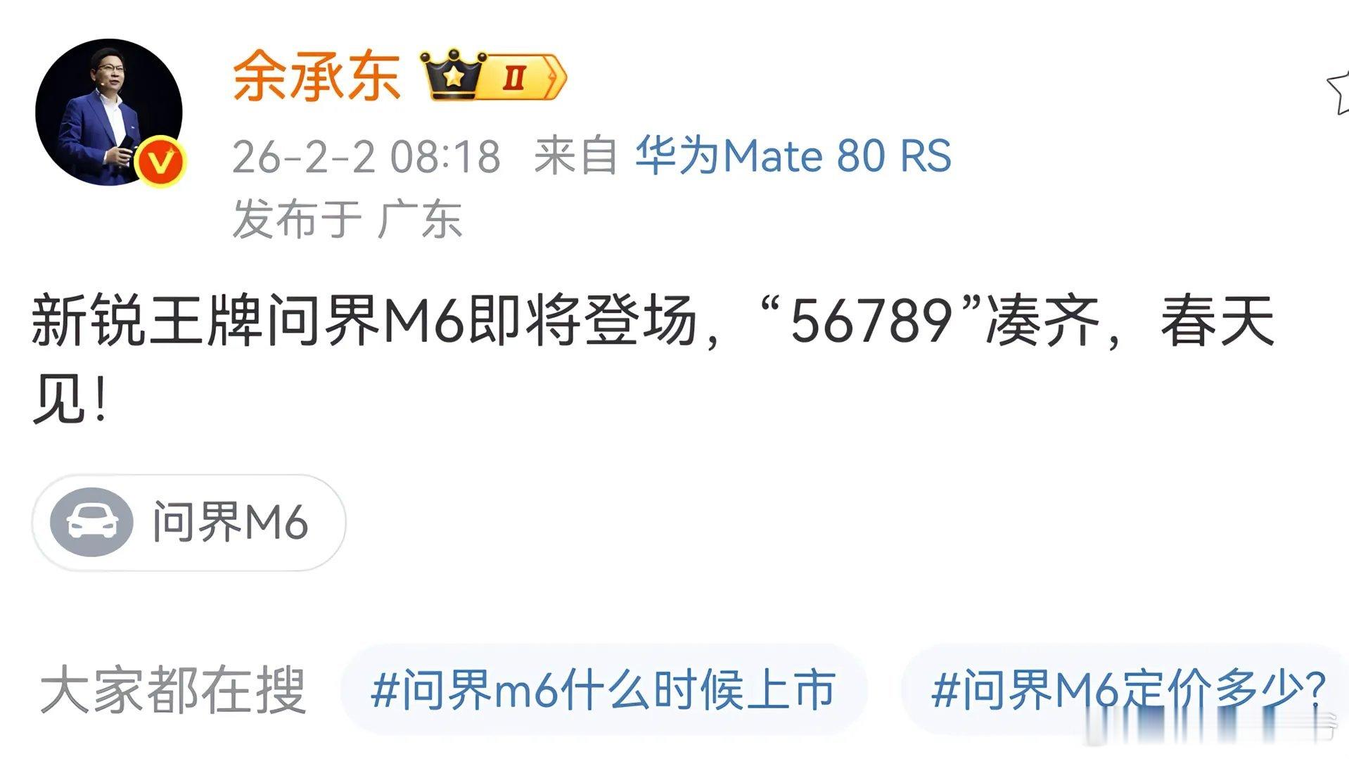 新锐王牌问界M6即将登场,"56789"凑齐,春天见!