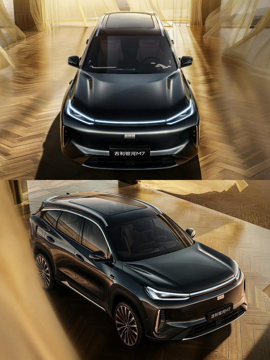 作为银河L7的换代车型,M7尺寸和L7接近,定位紧凑级但官方称为中型。全系搭载1.5L插混,提供18.4度和29.8度两种电池可选