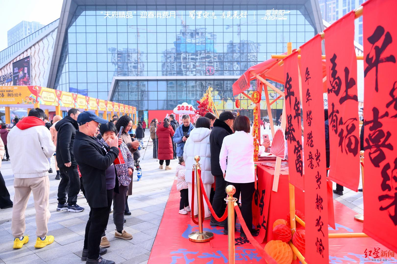 自1月26日启幕以来,本次年货节成为绵阳经开区新春消费打卡地之一,累计吸引超10万人次参与。活动设置经开万达广场主会场及城南VV街、日新公园分会场,打造沉浸式、多场景的消费体验空间,现场主题打卡装置与福马、灯笼布置相映成趣,浓厚的新春氛围让市民在采购年货的同时,感受满满的年味。