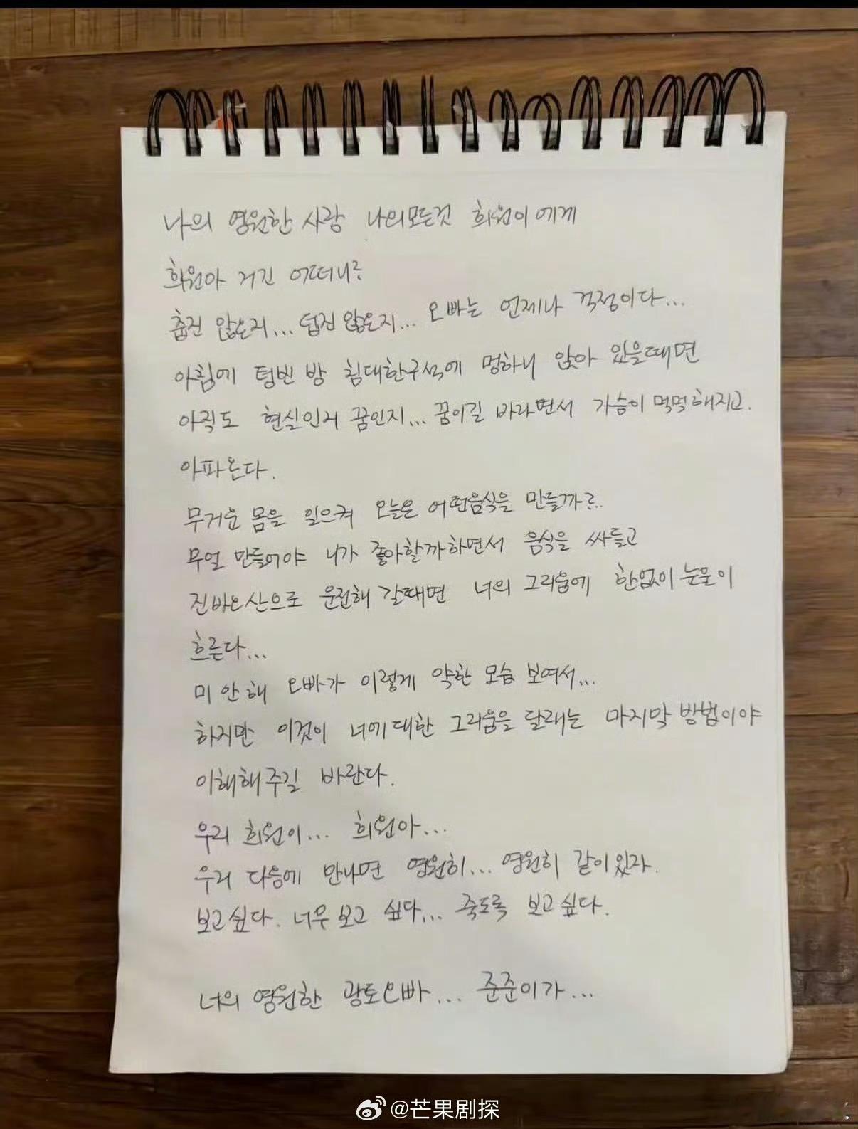 具俊晔发手写信悼念大S一周年具俊晔悼念大S一周年的手写信 具俊晔发手写信悼念大S