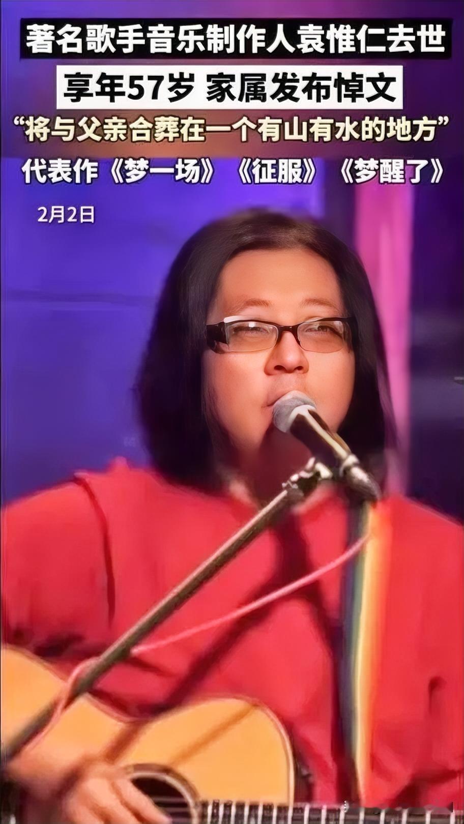 2026年2月2日,乐坛与娱乐圈同陷悲痛:57岁金牌音乐人袁惟仁因病离世,而这一天恰是“偶像剧女王”大S去世一周年忌日。袁惟仁曾为王菲、那英创作《征服》《梦一场》等经典,6年前因跌倒脑溢血成植物人;大S则在2025年因流感引发肺炎猝然离世,年仅48岁。两位公众人物的命运轨迹在同一天交汇,令人唏嘘生命无常,更引发对健康与珍惜当下的深刻共鸣。