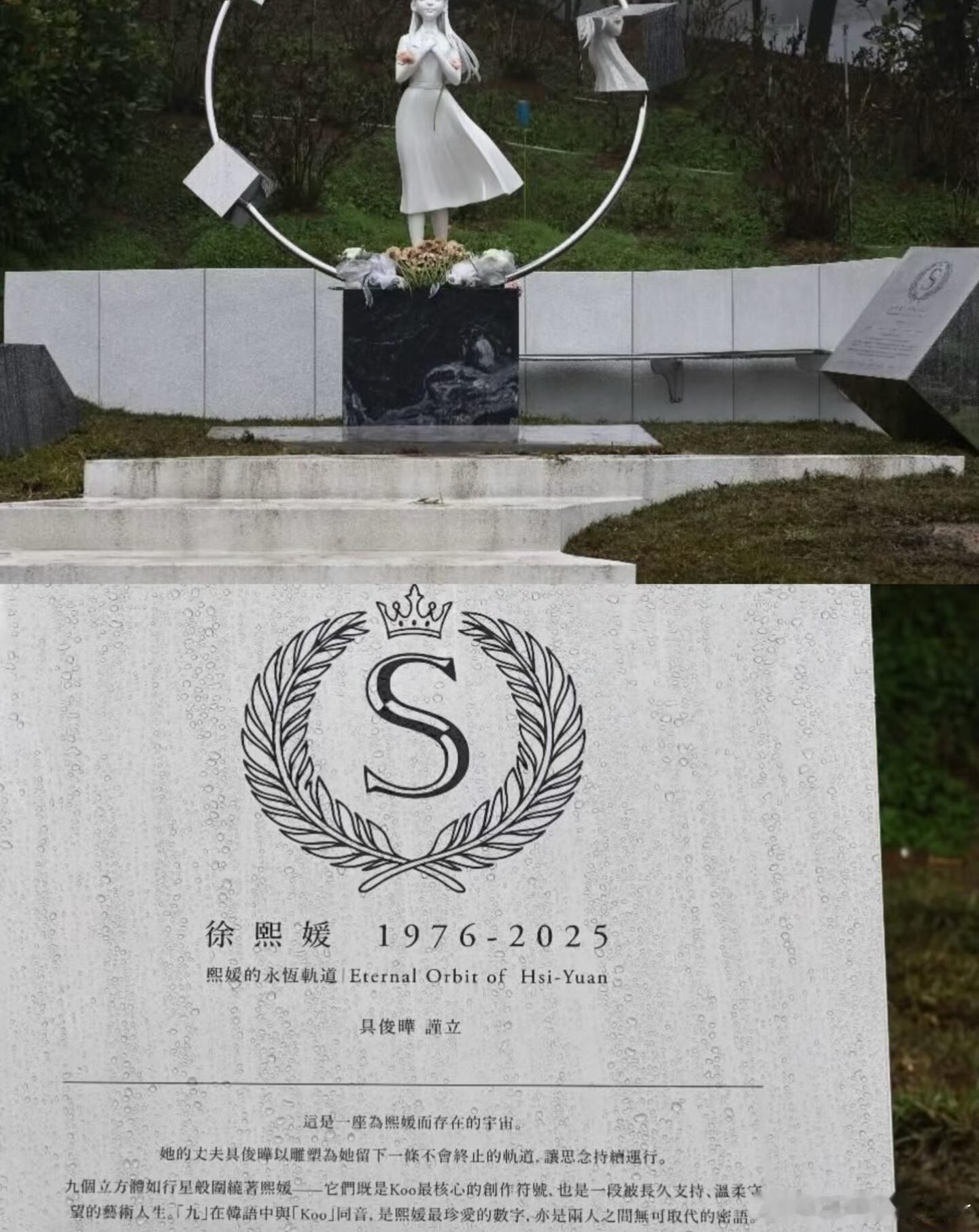 周渝民搀扶哭红双眼的言承旭大S纪念雕像揭幕如少女❗️周渝民具俊晔现身看到周渝民言承旭低头献花的侧影,恍惚间还是20年前的道明寺和花泽类在守护杉菜雕像是一个小女孩,可能在大S的家人心中,一直把她当做一个孩子吧,S妈白发人送黑发人,不敢想象她看到这座雕像的时候,心里该有多难受。小S摸着雕像哭的不行,这座雕像是具俊晔亲自设计的,九级台阶是长长久久的意思最后雕像定格在微笑合掌的模样,就像我们记忆里永远25岁的杉菜这场雨,终是淋湿了所有人的青春