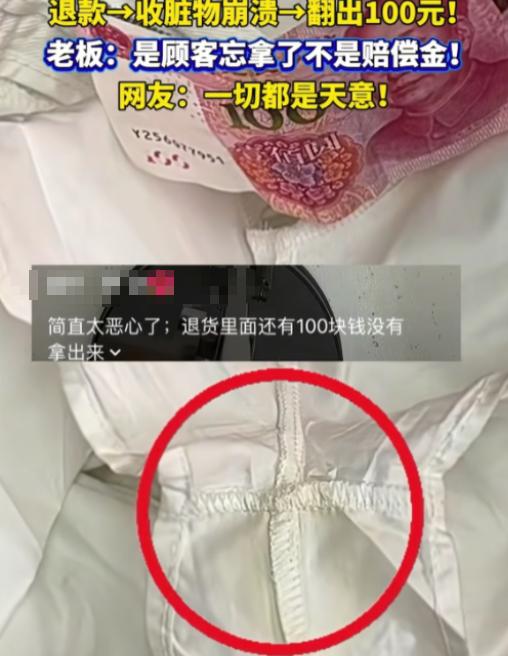 天意!广东,一店主收到顾客退回来的裤子,见裤子完好无损,而且吊牌也在,也没细看,就把70多块钱的货款退给了对方,万万没想到,他把裤子退给工厂后,工厂又把裤子退回来了,说裤子被人穿过,裤裆那都是黄的,就在店主惆怅之际,却发现裤子口袋里居然有100块钱!网友:这真的是天意!   今年三十多岁的袁先生,在东莞开服装网店已经五年多,没有轰轰烈烈的生意规模,全靠诚信经营攒下的回头客支撑,每天守着不大的仓库,打包、发货、处理售后,忙得脚不沾地。   仓库里常年堆着大大小小的退货包裹,地上散落着没收拾完的纸箱和胶带,每天要处理十几单甚至几十单退货。   然而几天前,一位顾客在袁先生的店里下单了一条白色短裤,收到货没几天,就申请了七天无理由退货,理由写得含糊其辞,只说“不合适”。   袁先生当时正忙着打包一批发货订单,手上的活停不下来,看到退货申请后,没多想就同意了,随手把退货地址发给了对方,压根没多想后续会出问题。   没过三天,退货包裹就寄到了仓库,袁先生随手拆开,一眼就看到那条白色短裤挂着完整的吊牌,表面干干净净,没有任何破损、污渍,看起来和全新的没什么区别。   他没有多想,也没有翻查裤子的内里,当场就通过了退款申请,把70多块钱的货款全额退给了那位顾客,全程不过一两分钟。   处理完这笔退款,袁先生就把这条短裤和其他几件退货衣物放在一起,打包好寄回了合作的工厂,打算让工厂重新整理、清洗后,进行二次销售,毕竟小本生意,能省一点是一点。   他本以为,这单退货就这么平平淡淡地结束了,哪怕没赚到钱,也不至于亏本,可他万万没有想到,反转很快就来了。   两天后,工厂那边把包裹原封不动地退了回来,还附带了一张简单的备注,上面的字迹很潦草,却字字扎心:裤子被人穿过,裤裆处有明显黄渍,无法清洗,影响二次销售,予以拒收。   袁先生当时就懵了,心里咯噔一下,赶紧拆开包裹,把那条白色短裤拿出来,凑到灯光底下仔仔细细地检查了一遍。   这一看,他的脸色瞬间沉了下来,一股火气顺着胸口往上冒,连手都有点发抖。   那条短裤的正面依旧干净整洁,可一翻到内里的裤裆处,一大片发黄的污渍赫然在目。   颜色暗沉,边缘还有淡淡的印记,明显不是短时间试穿能弄出来的,更像是穿了好几天,而且脏了之后压根没有清洗,就直接塞回包裹里退了回来。   袁先生越看越生气,越想越憋屈,按这条裤子的进货价,差不多七十块钱,再算上来回的运费、打包的耗材,还有他处理售后、寄回工厂的时间成本,这一单不仅白干,还倒贴了不少钱。   他拿着那条脏裤子,站在仓库里,气的胸口发闷,却又无可奈何,只能自认倒霉,打算把这条裤子当成瑕疵品,随手丢进垃圾桶里,就当是吃了个哑巴亏。   就在他伸手,准备把裤子扔进垃圾桶的瞬间,指尖无意间碰到了裤子的口袋,摸到了一张硬硬的、折得很平整的纸。   袁先生愣了一下,停下了手上的动作,下意识地把手伸进了口袋,掏出了那张纸。   展开一看,他整个人都僵住了,刚才还满脸的怒气,瞬间被一种哭笑不得的情绪取代,那张纸,竟然是一张崭新的百元现金,硬挺挺的,颜色鲜亮,一看就不是放了很久的样子。   他反复看了看手里的现金,又看了看那条脏裤子,愣了足足好几秒,才反应过来,这笔钱,大概率是那位顾客穿这条裤子出门时,随手塞进口袋里的。   退货的时候太心急,或者是一时疏忽,压根没想起口袋里还有钱,就这么不小心“送”给了他。   那一刻,袁先生的心里五味杂陈,火气消了大半,可又多了几分纠结。   他没有丝毫“赚到了”的喜悦,反而觉得更憋屈,这条裤子被穿得这么脏,对方居然还能把一百块钱忘在口袋里,可见退货时有多敷衍,有多不把别人的劳动成果当回事。   他也曾想过,要不要联系那位顾客,把这一百块钱退回去,毕竟这笔钱是对方遗失的,从法律上来说,捡到他人遗失的财物,理应归还。   可现实却让他犯了难,那天的退货包裹有十几单,都是同款、同色、同尺码的短裤。   他当时忙得昏头转向,没有给这条裤子做任何标记,现在早就分不清哪条裤子对应哪个顾客,后台订单也无法精准对应,根本找不到那位退货的人。   无奈之下,袁先生只能暂时把这一百块钱收了起来,心里盘算着,若是以后那位顾客发现钱丢了,找上门来讨要,他再还给对方也不迟。   后来,袁先生无意间和身边的朋友说起了这件事,朋友把这件事发到了网上,没想到一下子就火了,引发了全网网友的热议。   网购的本质,是双向的信任与理解,商家坚守诚信,消费者懂得尊重,才能让这个行业越来越好,才能避免更多这样的乌龙与纠纷。   才能让每一份真诚,都能得到应有的善待,每一份付出,都能得到应有的回报。