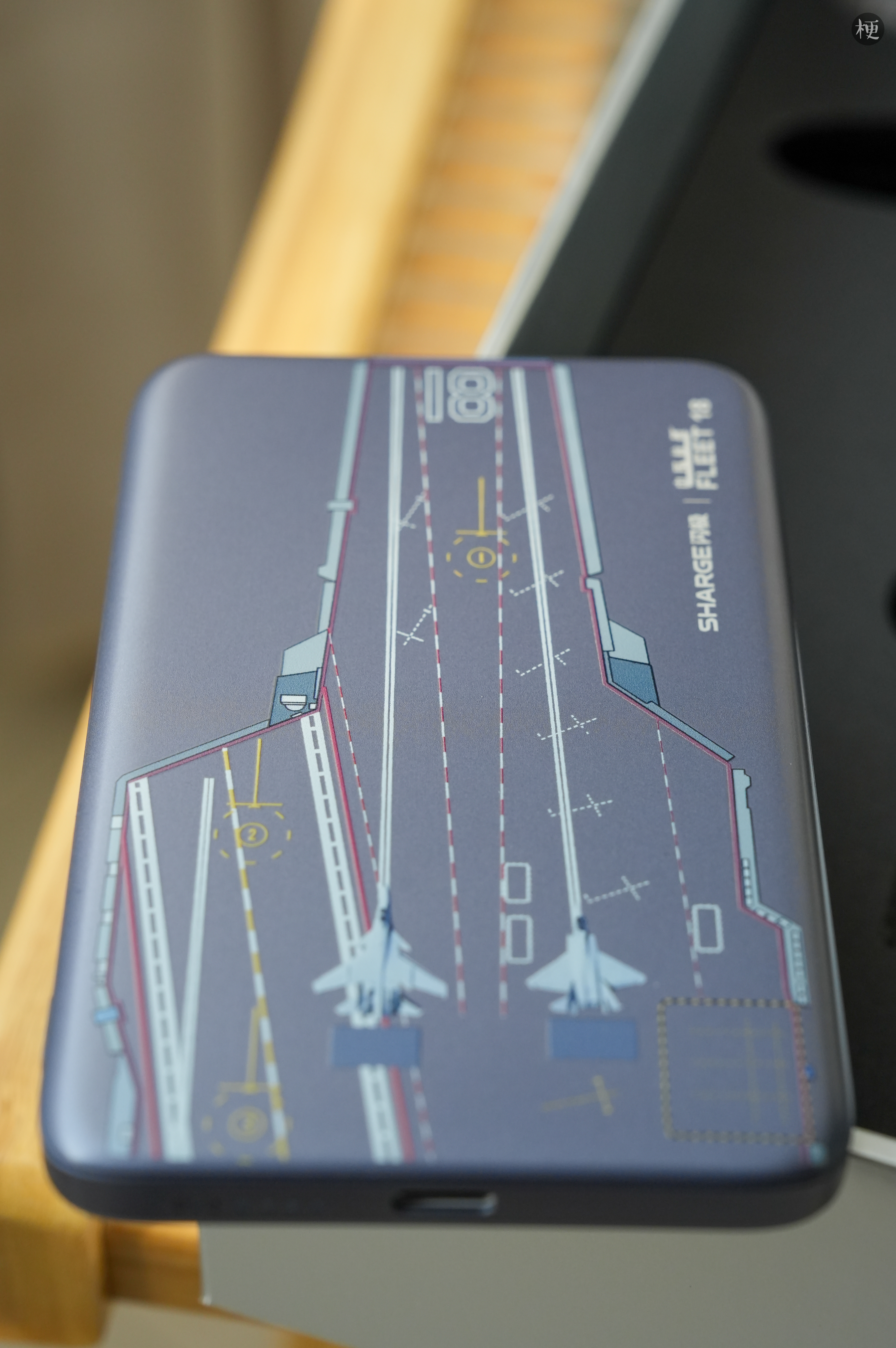 闪极和航母联名有点意思,眼镜框是3D打印的,充电宝有航母图案,而且很薄仅0.87