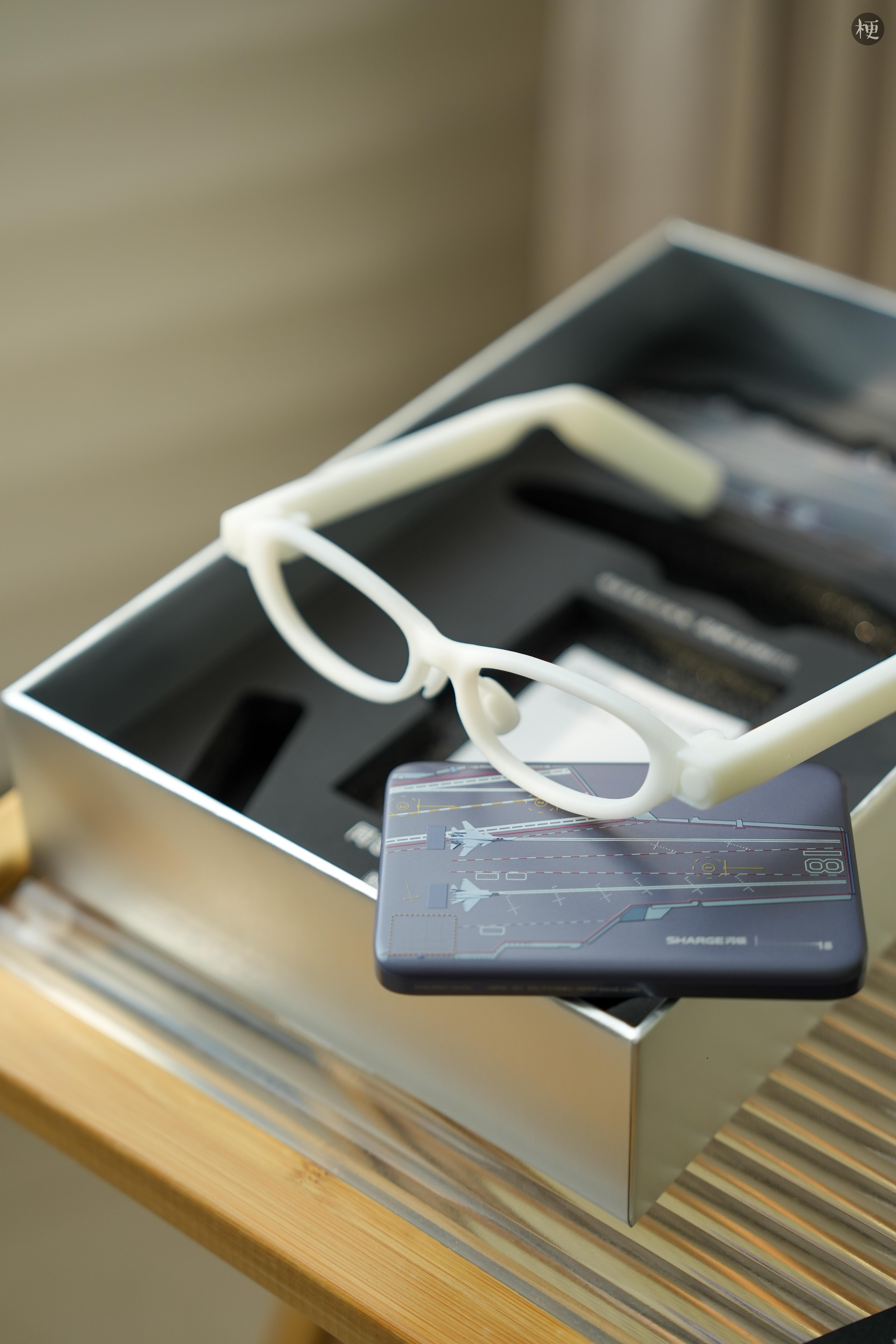 闪极和航母联名有点意思,眼镜框是3D打印的,充电宝有航母图案,而且很薄仅0.87cm,容量5000mAH。主要是眼镜,可以提供个性化定制服务,佩戴起来确实会更舒适一些。