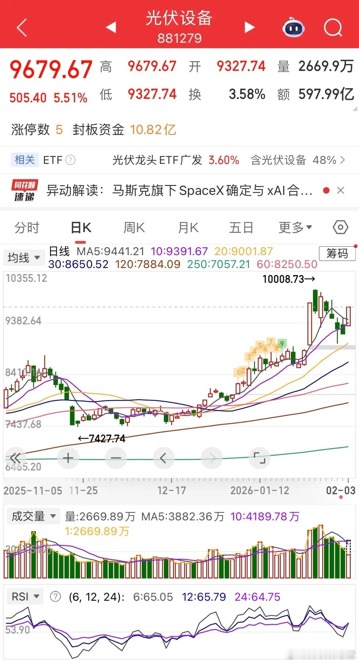 板块轮动方面,市场资金呈现快速切换特征,光伏板块今日扛起领涨大旗,大涨近5%成为核心主线;半导体板块跳水后,军工、商业航天板块逆势拉升,场内卫星ETF大涨超3%,机器人板块同步走强,永赢相关标的大涨近3%。整体来看,场内资金较为混沌,暂无明确的共振做多方向,板块轮动速度超出预期,存量博弈特征显著。