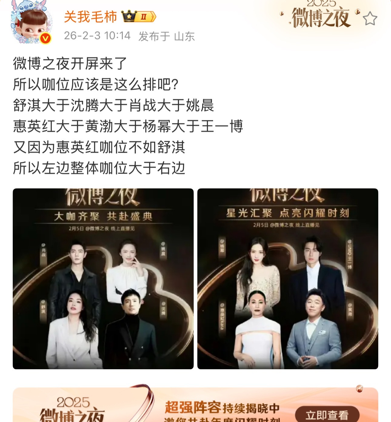 果然微博之夜最有意思的话题还是“咖位”