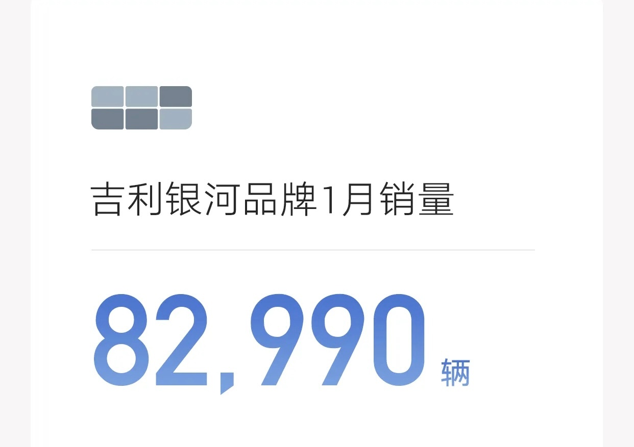 我刚发现,吉利银河1月份的销量是8万多,在众多1-2万的销量战报中,很扎眼。