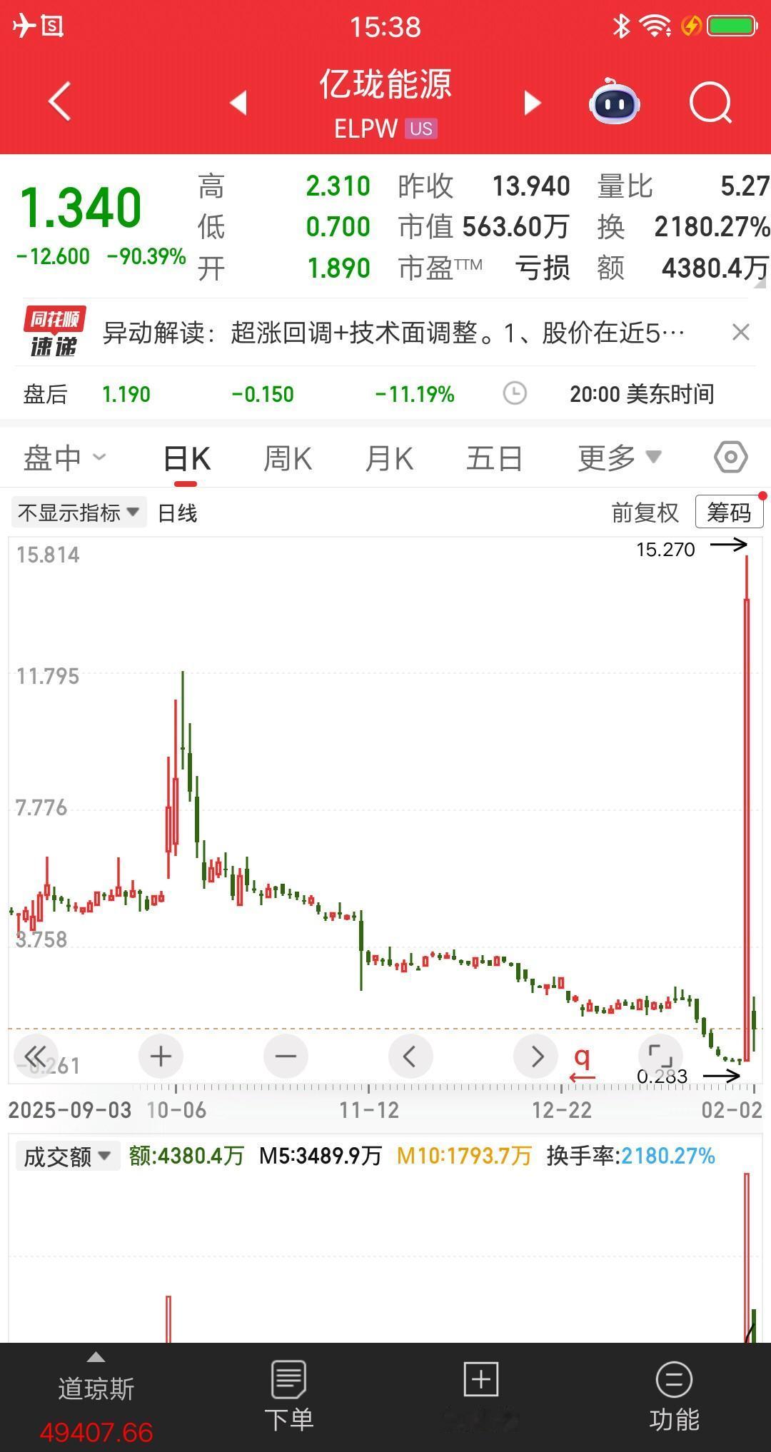 美股今天跌的最惨的票诞生了,爆仓大阴线从天而降,就问你们怎么躲?还想要T加0,还想要取消涨跌幅限制,真要是这样,主力做梦都能笑醒。 开盘跌幅85%,触发熔断机制后,短暂休整了一会,继续杀跌,收盘跌幅90%,相当于九个跌停板。再看看日线图,昨日猛涨30多倍,今日一秒跌回去,追高的资金原地破产,就问你们怕不怕? 盘子小易控盘,主力想咋玩就咋玩,一刀割下去韭菜根都没了。辛苦交易若干年,一朝亏到解放前呀。 有些人,三个跌停板就受不了了,五个跌停板心态就崩了,哭的梨花带雨。真要是一天跌破产,天台都不够用。 美股不存在小资金快速做大的情况,因为有价值的票,涨起来需要很长时间,又或者波动很小。而那些适合投机的仙股,容易一夜归零。 曾经的美股也有很多散户,现在为什么没有了。原因太扎心了,一个破产大阴线消灭一批,多年下来散户销声匿迹了。 A股的未来和美股类似,随着市场越来越成熟,投机倒把的模式,会慢慢消失。小资金做大的神话,将会彻底消失。本金越多就越容易赚钱,对散户来说,不知道是好是坏。 就写到这吧。