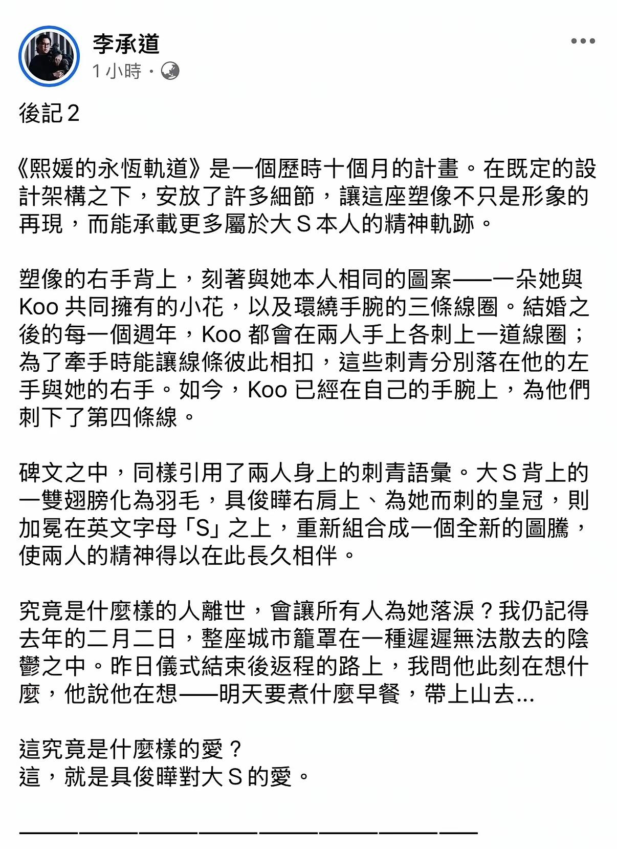 哇!这细节太有心了 原本只注意卡通女孩和大S相貌的差异。没想到看清细节和具俊晔手稿图曝光后,才发现具俊晔真的好爱好爱 熟悉大S的都知道,她右手纹了一朵花,还有三条线圈。这都是她和具俊晔相爱的记录。而最初的画稿曝出,果然那一幅幅画面无一例外都有这两个印记。虽然画的不像,但确确实实就是大S 同样的,大S雕像的右手上依然有这些。世界上没有什么是永恒的,但具俊晔却为大S设计了《熙媛的永恒轨道》这份爱真的很不容易!