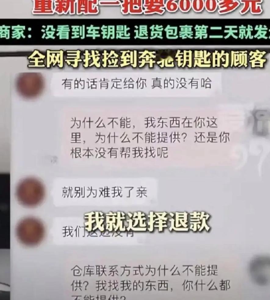 “心真大!”近日,浙江嘉兴,一女子网购大衣,试穿后觉得不合适,便直接退了回去,等要开车时,发现自己的奔驰车钥匙不见了,这才想起钥匙在大衣兜里,她连忙联系商家,可商家却称没看见,女子一下急了,因为再配一把要6000块! 事情发生在1月31号,那天嘉兴的气温突然骤降,冷得人直打哆嗦,沈女士之前网购了一件大衣,刚好那天收到了快递通知,就赶紧去快递站取了回来,本来按常理,取了快递应该回家试穿,合适就留着,不合适再退货,可沈女士觉得天太冷了,不想再冻着,就干脆在快递站直接拆了包,把新大衣往身上一裹,立马就暖和多了。 当时她身上还揣着奔驰车钥匙,穿大衣的时候,顺手就把那把沉甸甸的钥匙放进了大衣口袋里,也没多想,裹着新衣服,一路开着车回了家,等到了家她才仔细看了看这件大衣,发现尺寸有点不合身,穿着不太舒服,就想着第二天一早就给商家退回去,反正网购有七天无理由退货,也很方便。 第二天,沈女士就把这件大衣收拾好,塞进了退货包裹里麻利地寄了出去,可她当时只记得把口袋里的手机掏了出来,却偏偏忘了那个最昂贵的“配件”,奔驰车钥匙,就那样安安静静地躺在大衣口袋里,跟着退货包裹一起,寄回了商家的仓库,而她自己完全没意识到这个致命的疏忽。 等到下午沈女士准备出门办事,习惯性地去摸口袋里的车钥匙,可指尖触到的全是空的,她心里咯噔一下,这才猛地反应过来,钥匙可能忘在那件退货的大衣兜里了!她一下子就慌了神,冷汗都快冒出来了,那可不是普通的钥匙,是价值6000块的奔驰电子钥匙,再配一把不仅贵,还特别麻烦。 她来不及多想,赶紧火急火燎地联系了卖大衣的商家,语气急切地说明情况,问商家收到退货的时候,有没有看到大衣口袋里有一把奔驰车钥匙,可商家给出的回复,冷得像那天嘉兴的天气,就简单几句,没看见找不到,收到退货的时候,没发现有钥匙。 这下沈女士更急了,她承认自己确实粗心,忘了把钥匙从大衣兜里掏出来,有错在先,但她觉得商家也该给个说法,就提出了自己的要求,让商家拿出仓库的开箱视频、入库监控,证明他们收到退货的时候,确实没有拿到自己的车钥匙,她觉得这个诉求很合理,毕竟自己丢了这么贵的东西,总得有个凭证。 可现实却比她想象的要残酷得多,商家的回应,直接揭开了电商退货背后的真相,仓库里根本没有那么多高清无死角的摄像头,也不可能每个包裹都拍开箱视频,处理退货的,大多是临时请来的阿姨,每天要处理上百件退货,工作量特别大,检查包裹全凭一双手摸一摸、翻一翻,摸到里面有东西是运气,漏掉了也很正常,根本不可能一一仔细检查。 更让沈女士绝望的是,商家还甩出了一句话,那件大衣说不定已经二次销售出去了,这句话像一盆冷水,直接浇在了沈女士头上,这就意味着那把价值6000块的车钥匙,可能已经被下一位买家拿走了,也可能还在某个快递的路上流浪,想要找回来简直比大海捞针还难。 双方就这么僵持着,谁也不肯让步。商家觉得自己很冤枉,他们说就算真的收到了车钥匙,也没什么用,又开不了沈女士的车,根本没必要隐瞒,可沈女士却觉得商家太敷衍,自己丢了6000块的东西,商家就一句“没看见”就打发了,根本没有认真帮忙寻找。 这件事传到网上后,网友们的议论纷纷,大多人都吐槽沈女士心真大,有人说“谁家试衣服会把奔驰车钥匙揣兜里啊,这分明就是蹭穿完就退,结果自己粗心忘东西,纯属活该”,还有人说“为了一件156块的便宜大衣,亏了6000块,这小便宜占得也太亏了,简直是捡了芝麻丢了西瓜”。 沈女士现在也是追悔莫及,她打听了一下,配一把奔驰电子钥匙,不仅要花6000块钱,还需要3到7天的漫长等待,在这几天里她的奔驰车就只能停在原地,跟一堆废铁一样,根本开不了,给她的生活带来了很大的麻烦,其实说到底这件事还是因为她自己的粗心大意,为了图一时方便,在快递站试穿大衣,退货的时候又疏忽大意,忘了掏钥匙。