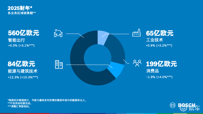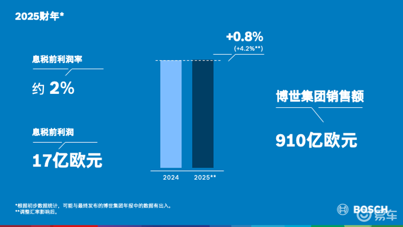 易车讯日前,博世集团公布了2025年财务报告,其中,中国市场实现了1,498亿元人民币(约184.6亿欧元)的销售额,同比增长4.9%。