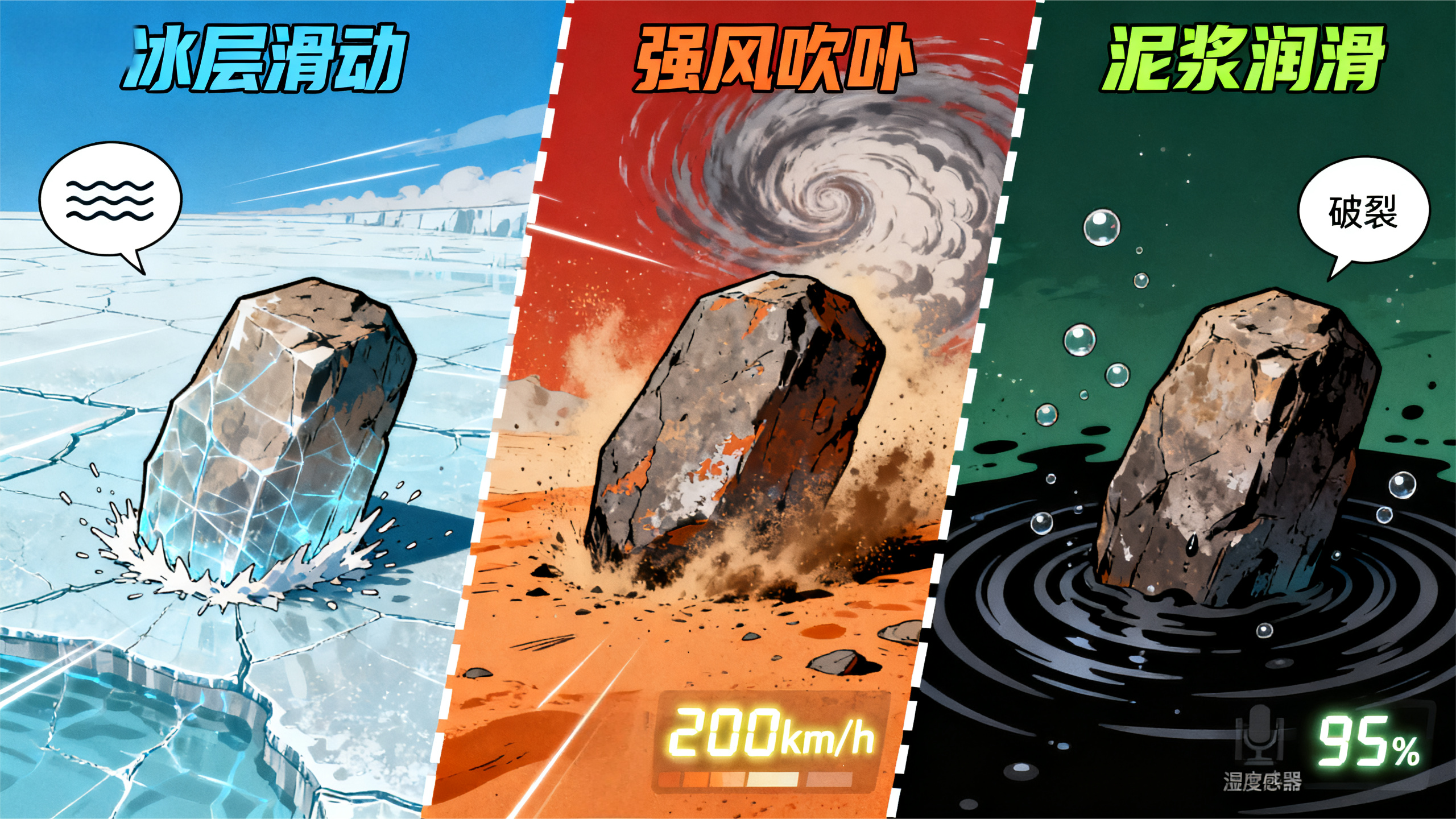 而泥浆润滑说则表明湿润的湖床泥浆大大降低了摩擦力,让重石也能够慢慢滑动。