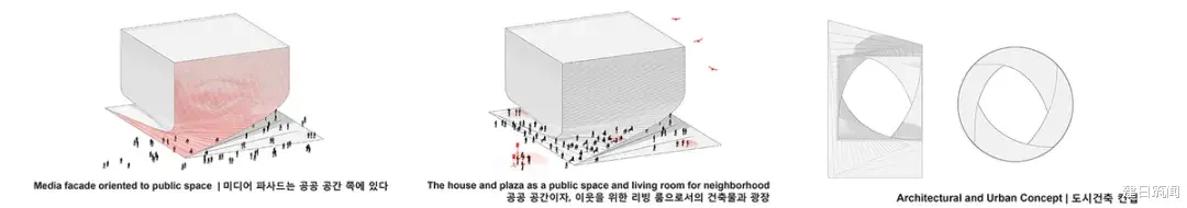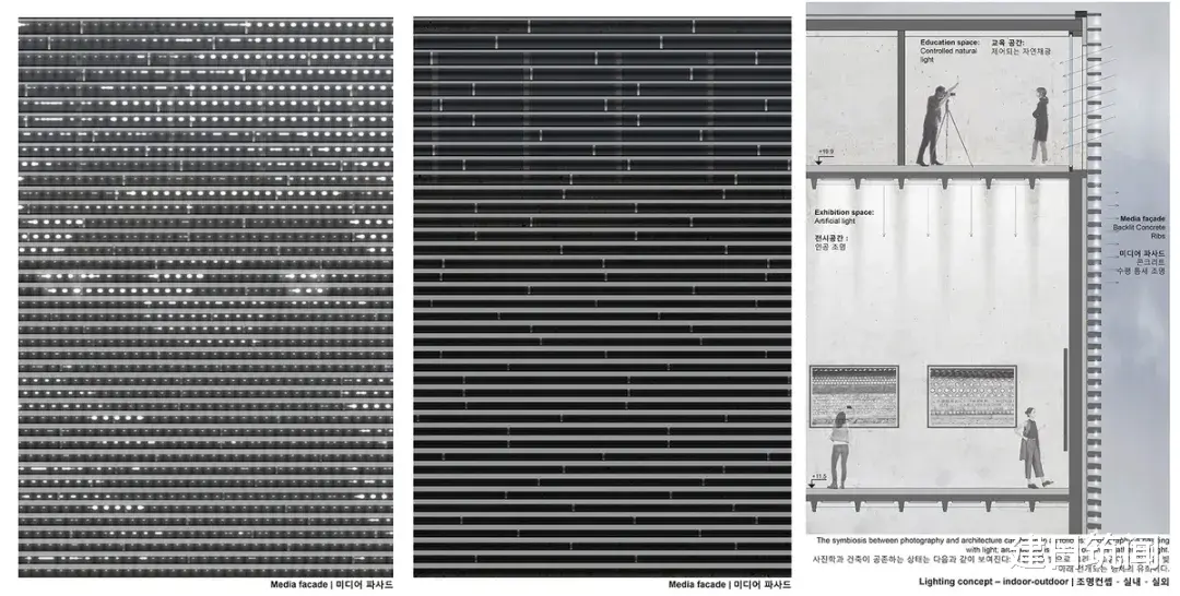 为了突出建筑与光之间的互动,设计团队采用背光混凝土肋条代替传统屏幕,从而实现光与建筑的共生。