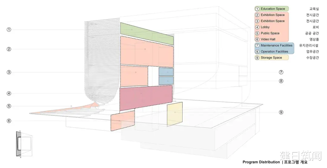 建筑内部的功能单元逻辑清晰、使访客能够自然地定位方向,并舒适地穿梭于展览区域。