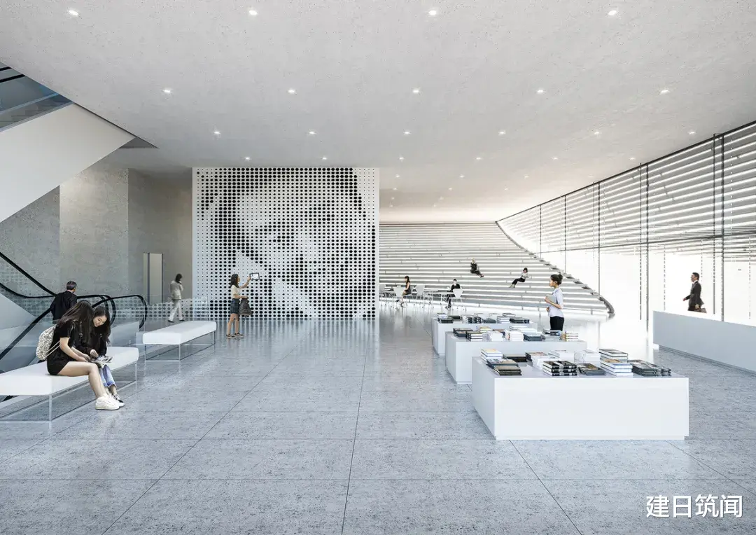 设计团队在内部展览空间采用“白色立方”的概念,打造出灵活多变,适用于任何形式的展示空间。