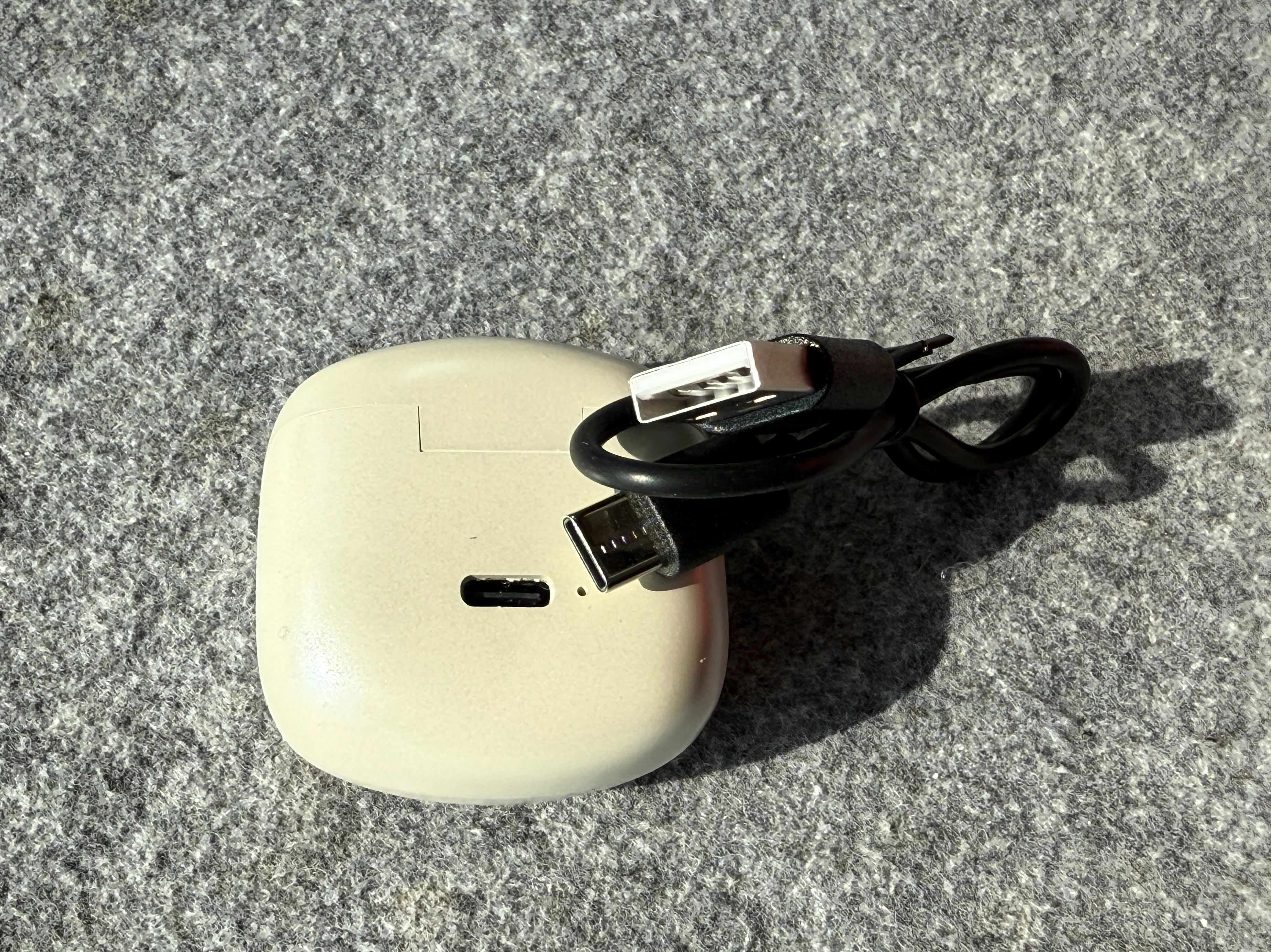充电仓的设计也十分用心。它采用磨砂质感的 ABS 材质,触感细腻,而且不易沾染指纹,始终保持干净整洁。圆润的边角设计握持起来十分舒适,充电仓背面的充电接口旁设有一颗状态指示灯,通过不同颜色的灯光反馈充电与电量情况,实用又直观。整体配件虽不繁杂,但每一件都兼顾了实用性与品质感,完全能满足日常使用的需求。