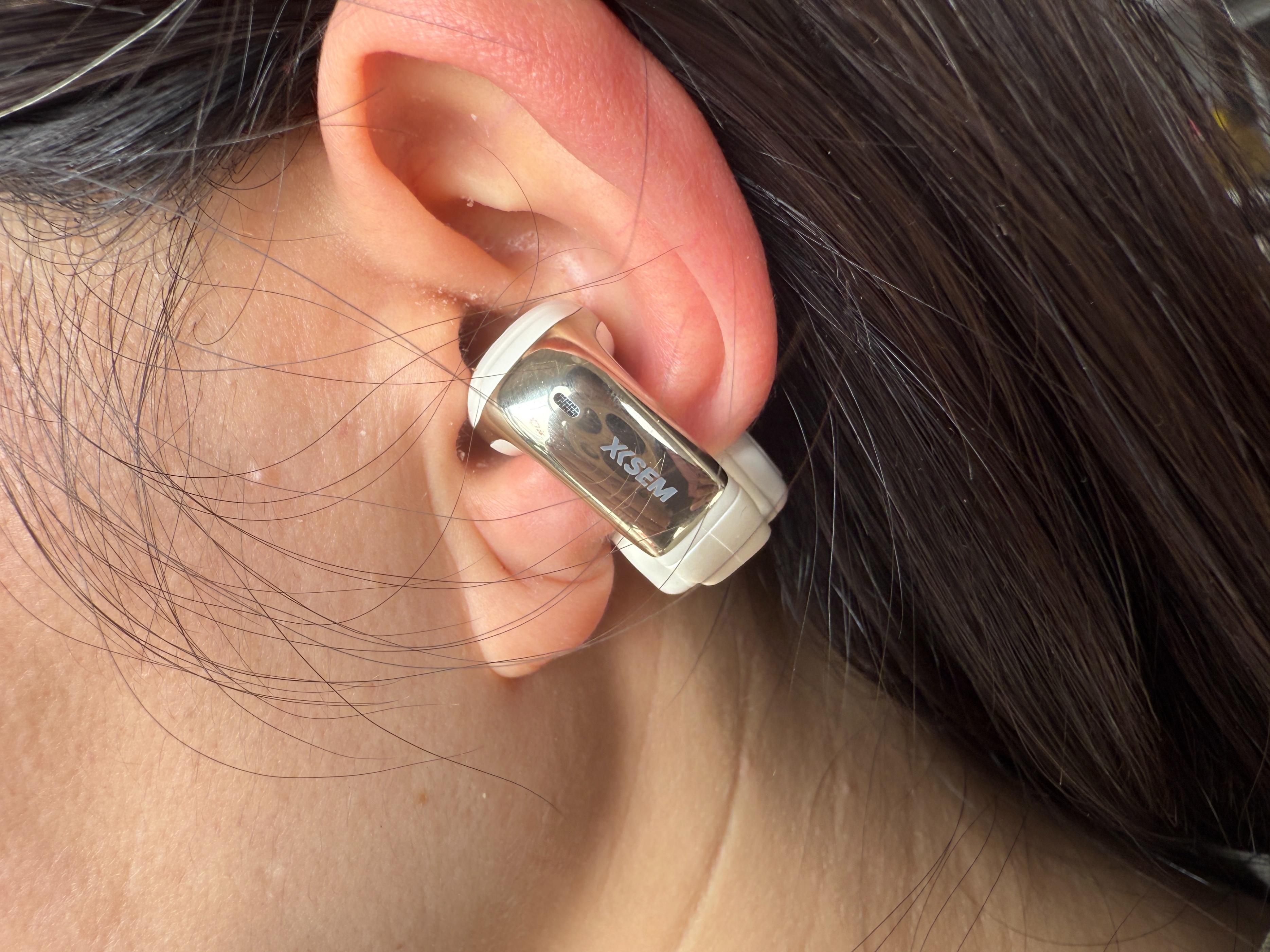 西圣 Plume 的佩戴体验堪称革命性突破。自主研发的 TriSix 三轴六点分力结构彻底解决了传统耳夹式耳机的痛点。通过三维空间力学与六点精密受力系统的结合,耳机在耳廓六大关键节点形成动态支撑,将压力均匀分散,完全消除了传统耳夹的压迫感与异物感。5.9g 的单耳重量轻如鸿毛,佩戴后几乎感觉不到存在,就像空气般轻盈。