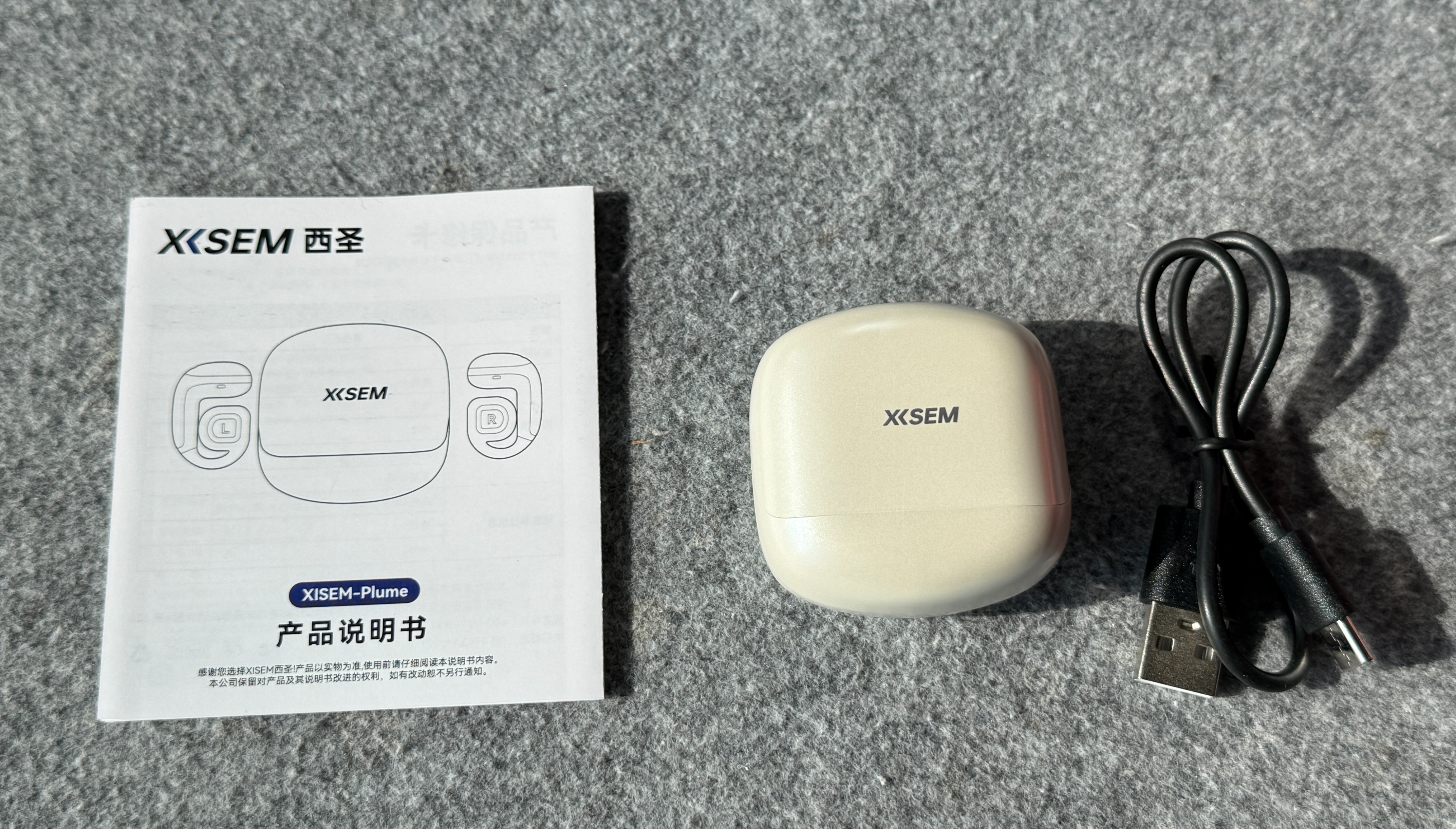 打开包装,耳机与配件分区摆放得整整齐齐,一目了然。核心配件包括一对西圣 Plume 耳夹式耳机、一个充电仓、一根 Type - C 充电线,还有一份快速使用指南。指南上清晰标注了配对方式、功能操作及注意事项,即使是数码新手也能快速上手,这份贴心的设计让人感受到品牌对用户的关怀。